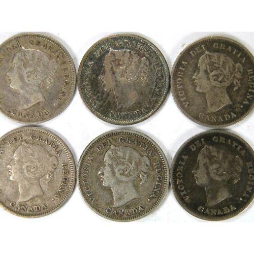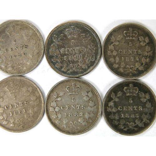 1870 Narrow Rims, 1871, 1874H Crosslet 4, 1881H, 1882H and 1885 Large 5. Six pale to light-medium toned pieces, all F-VF or better