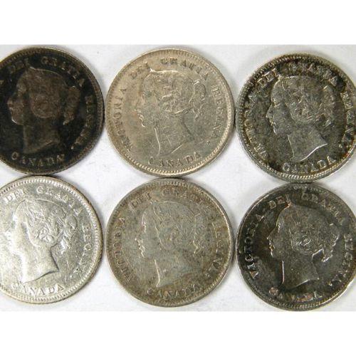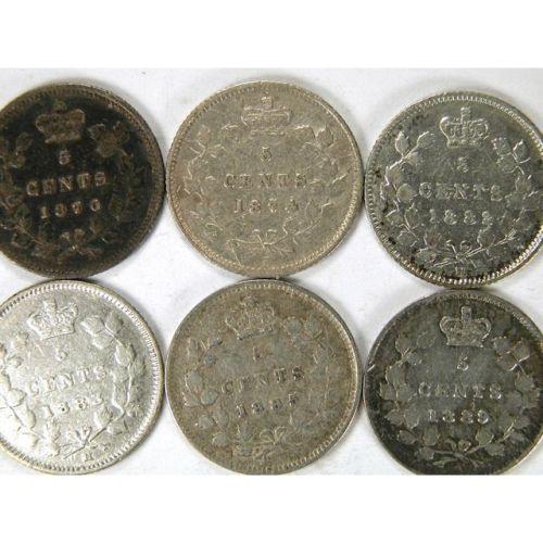 1870 Narrow Rims, 1874H Crosslet 4, 1882H, 1883H, 1885 Large 5 and 1889. Six pale to light-medium toned pieces, all F-VF or better
