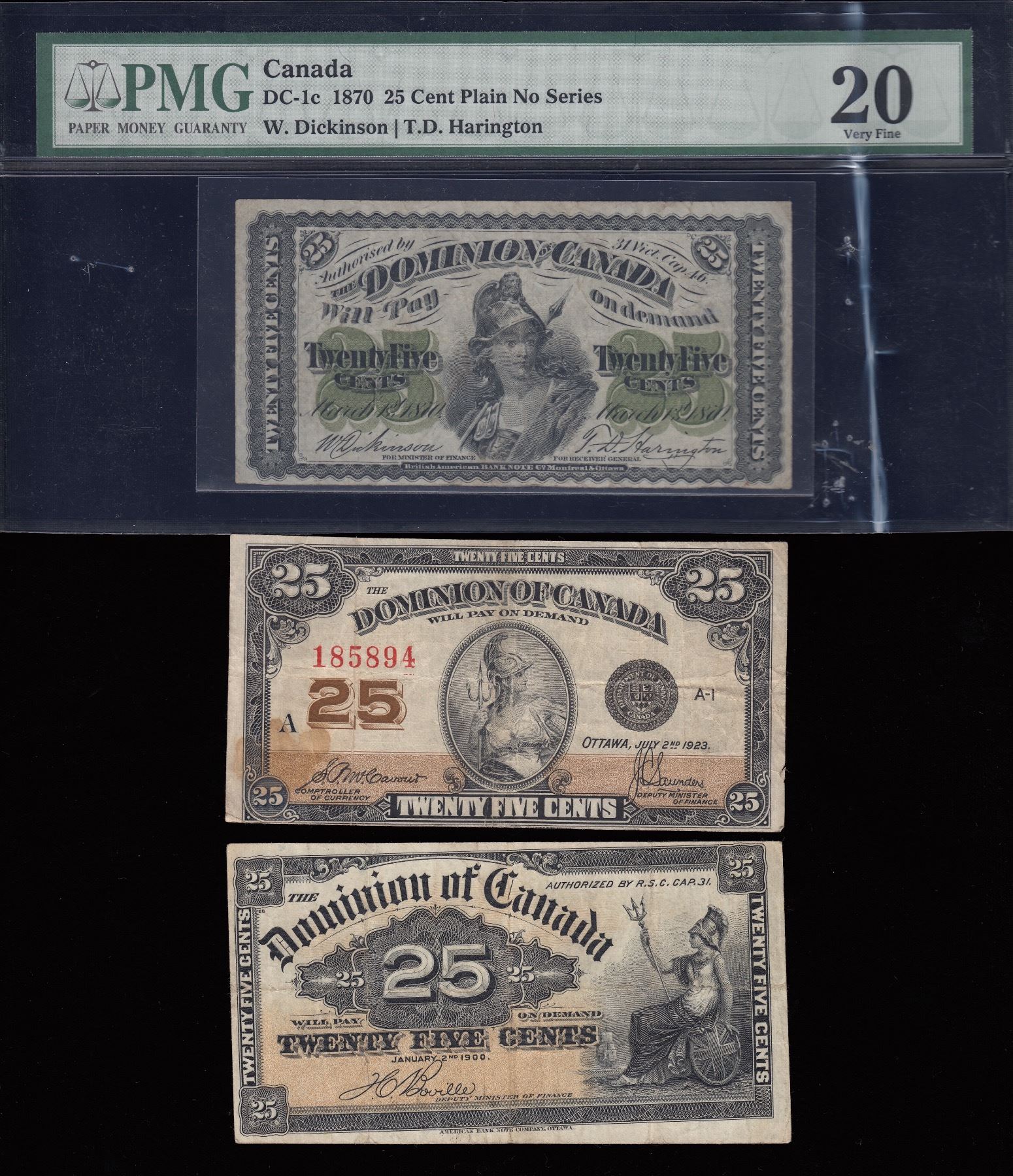 Includes: DC-1c. PMG VF20 (holder is damaged). DC-15b. Pressed VF. DC-24c. Fine+, stained. 3 Pcs.