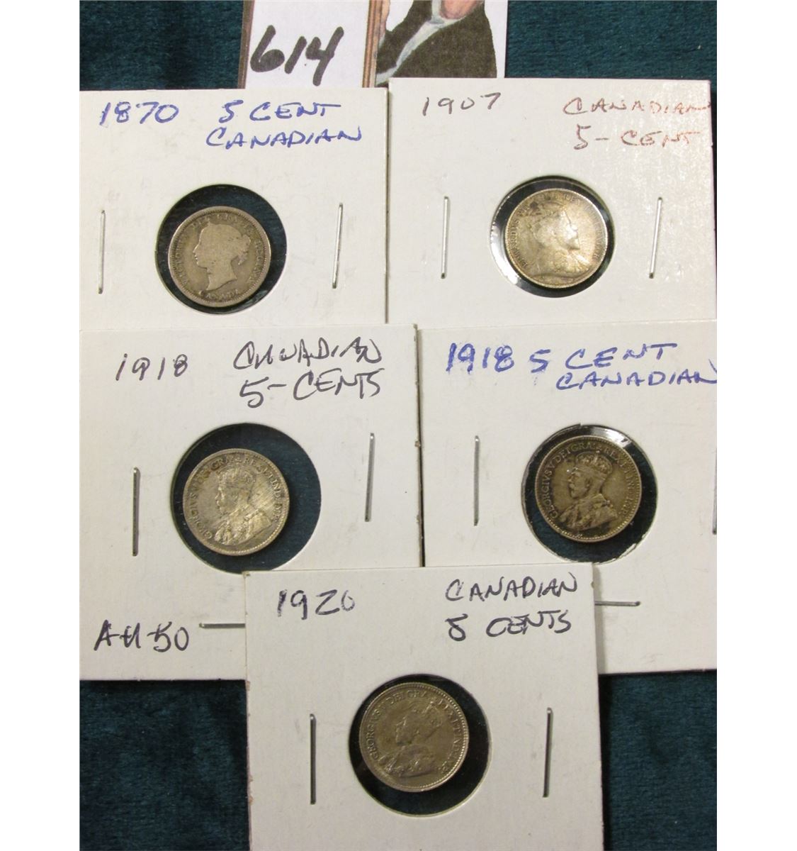1870-1920 Silver 5C Canada Group of 5 Pieces Diverse Grades & Condition