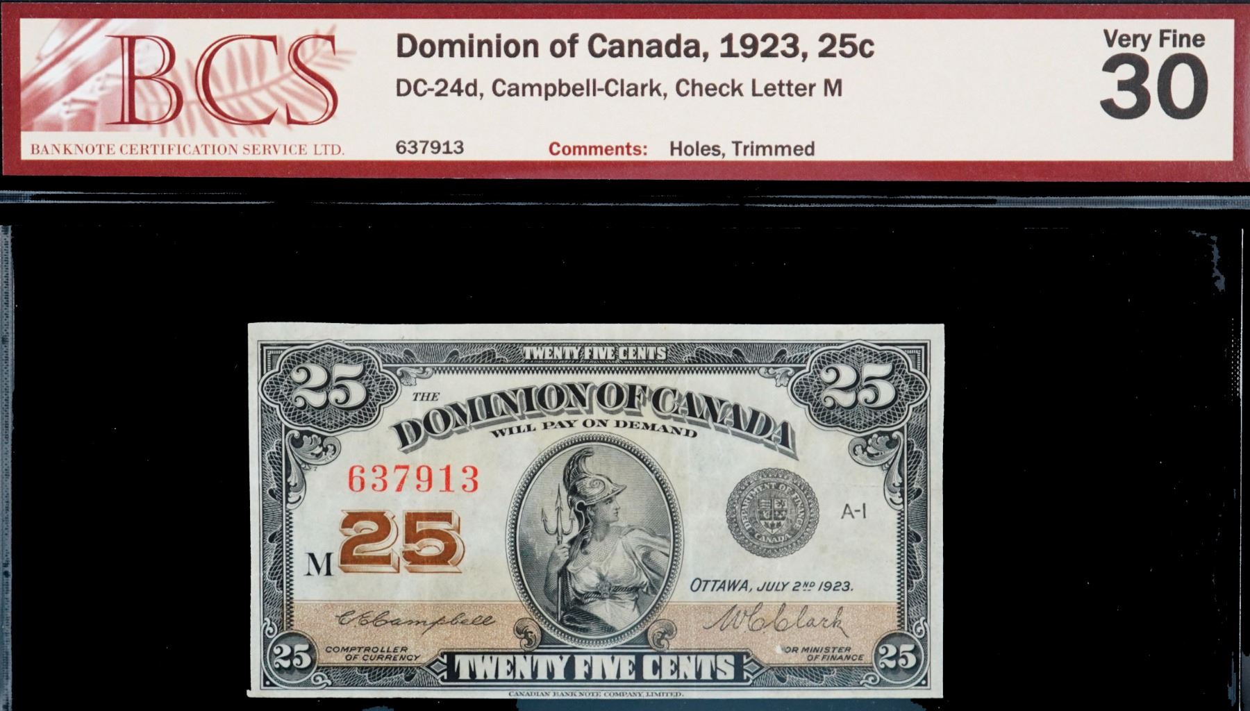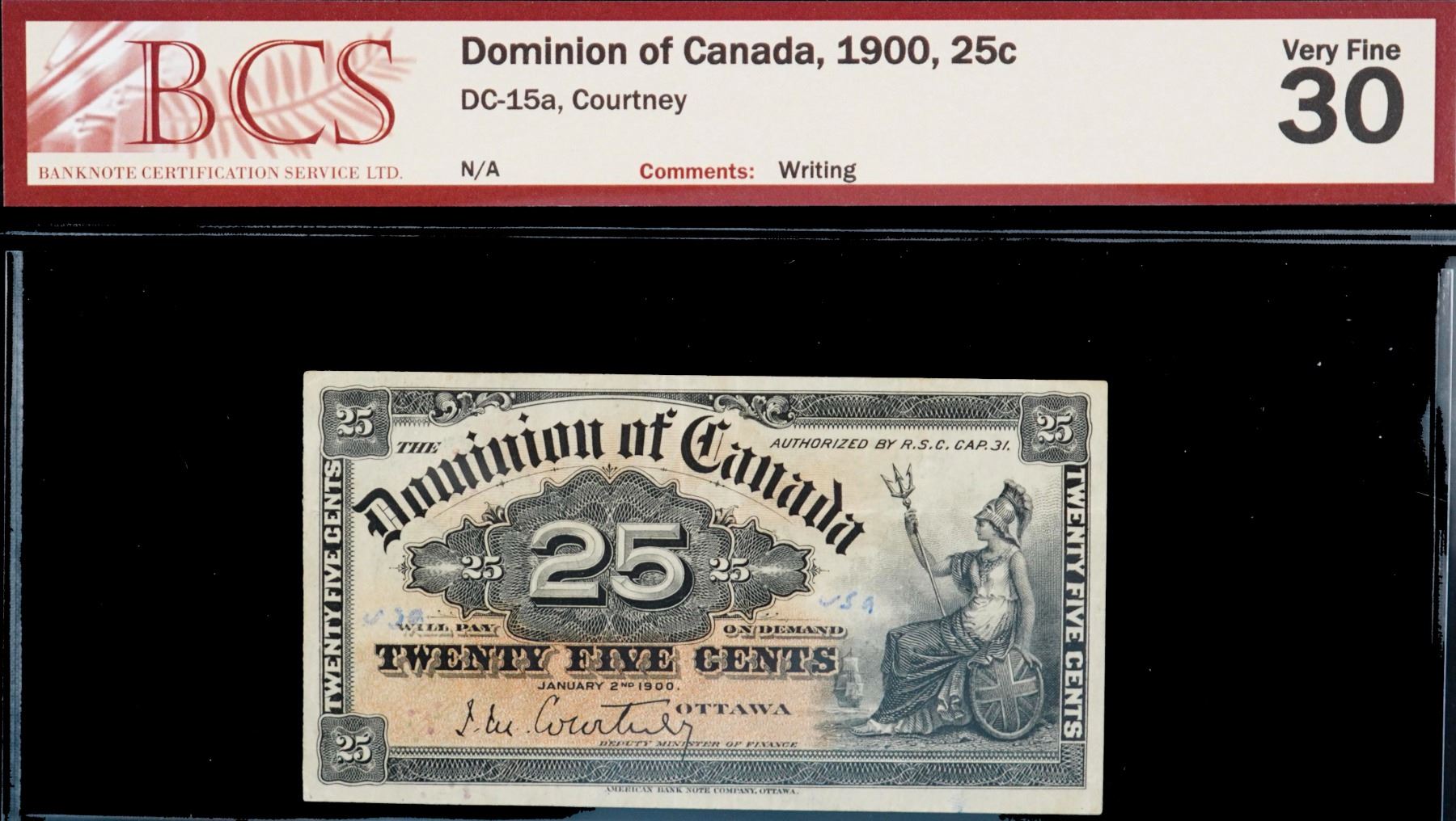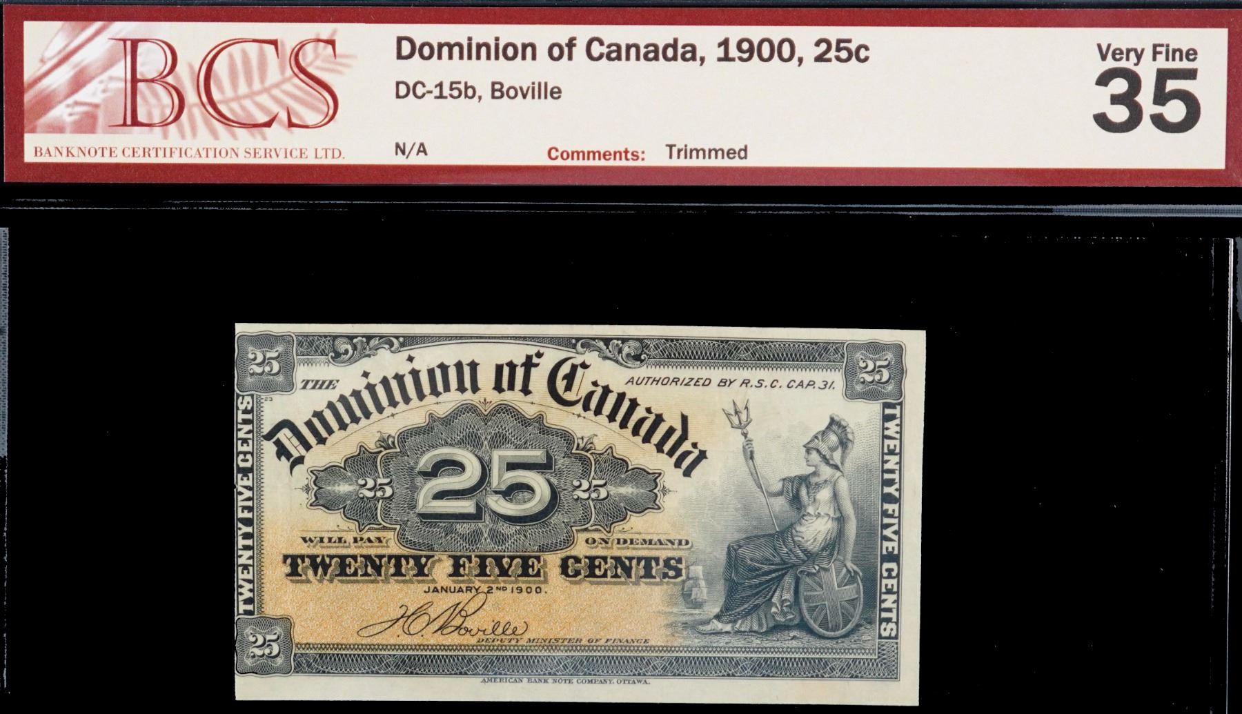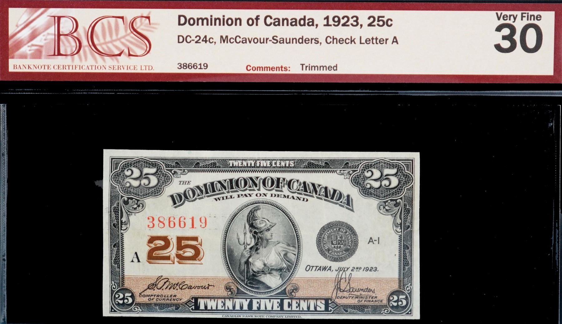 The cataloguer has taken every reasonable measure to ensure that all of the lots in this sale are as described and genuine. All raw coins and banknotes have been graded by the cataloger or the auction house which represent our best professional opinion. To grade coins and banknotes, we use Canadian grading standards, 42 years of experience and good conscience. However, grading is a subjective description in the opinion of the cataloger or the auction house. Among experts there are often differences of opinion on the grading and the eye appeal of a coin. The strike and the state of preservation are often debated. The Canadian Numismatic Company acts as an agent between consignors and buyers. The Canadian Numismatic Company does not guarantee that any coin or banknote cataloged will meet the standards, or the grade, of any third party grading companies. No warranty, whether impressed or implied. Items are as is, no warranty given. We cannot accept responsibility and waive all liability resulting in financial losses, and or incidentals accruing from the sale of any items, nor can we guarantee that items graded by third party services will grade the same if submitted to a different grading service or re-submitted to the same company. Statements by The Canadian Numismatic Company regarding the condition, the eye appeal, the strike and the population of items are for guidance only. All lots offered are sold "AS IS". Title to all lots remains with the auction house until paid for in full by the purchaser. But they are held at the risk of the purchaser once the time of the sale.