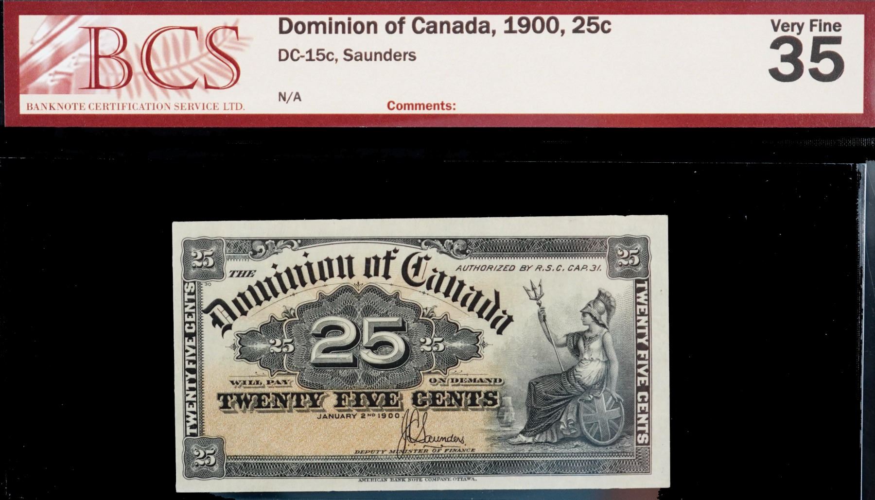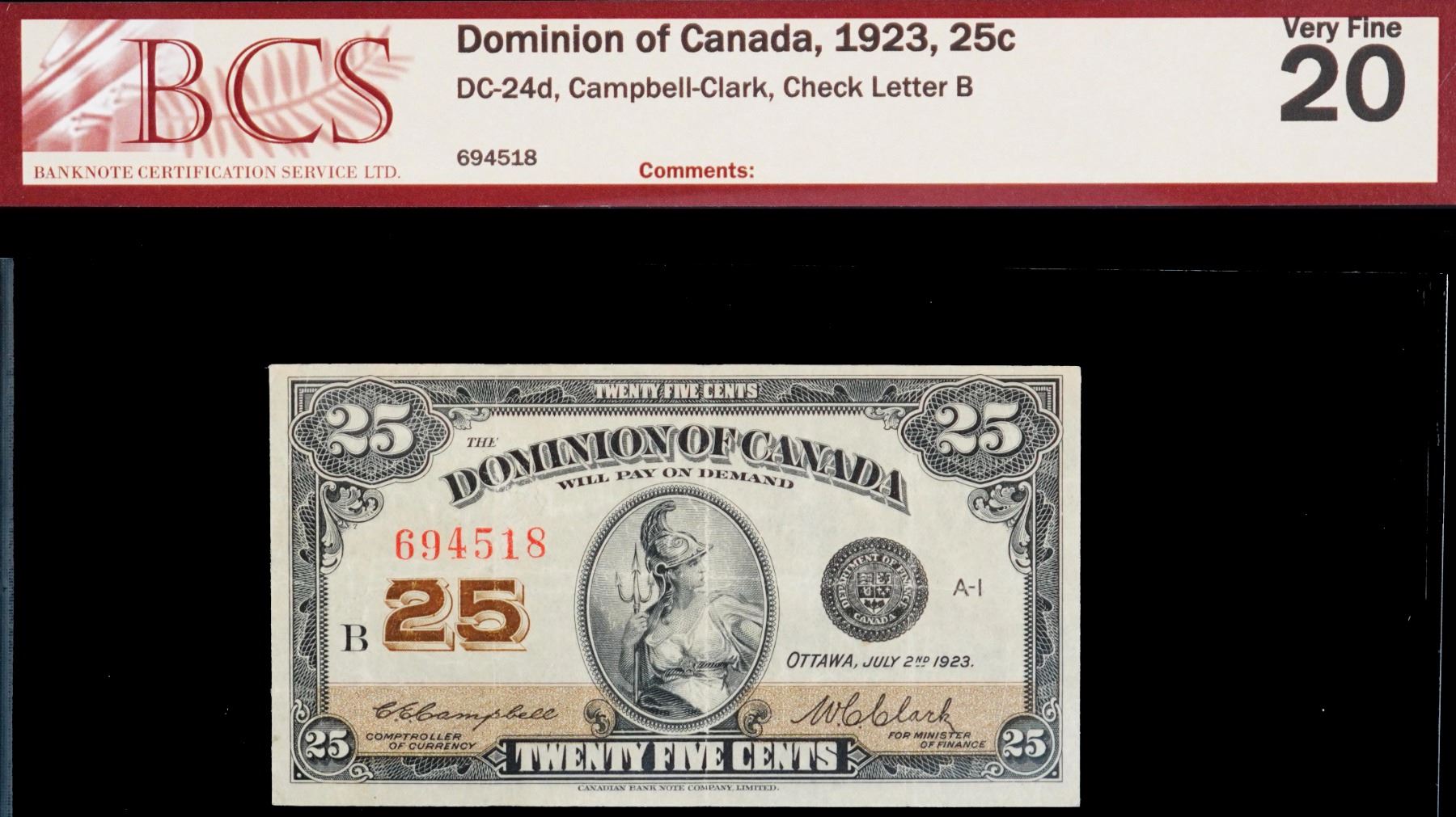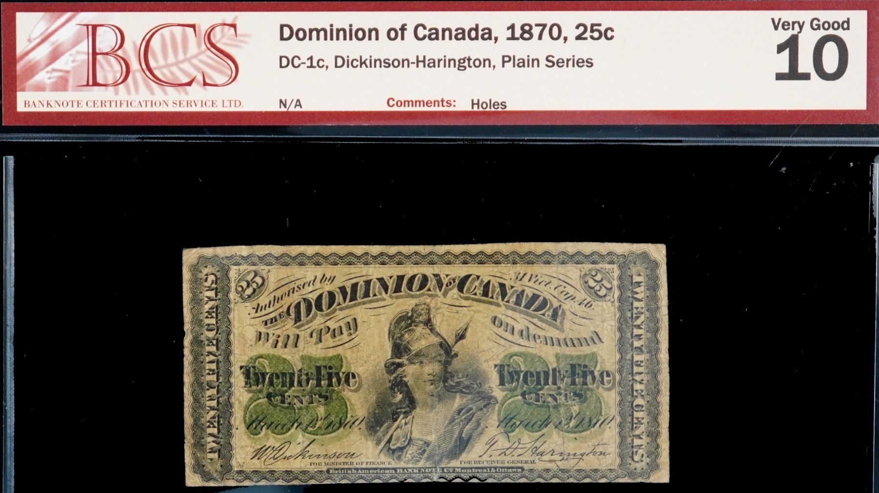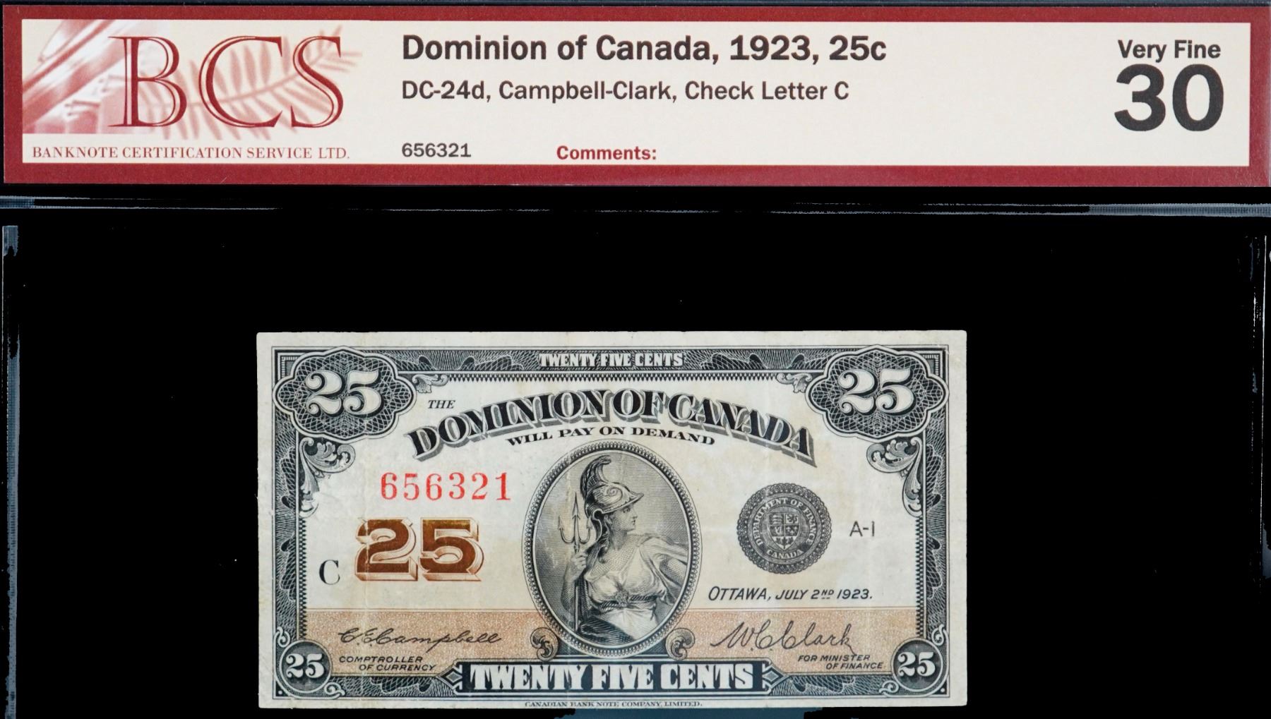 The cataloguer has taken every reasonable measure to ensure that all of the lots in this sale are as described and genuine. All raw coins and banknotes have been graded by the cataloger or the auction house which represent our best professional opinion. To grade coins and banknotes, we use Canadian grading standards, 42 years of experience and good conscience. However, grading is a subjective description in the opinion of the cataloger or the auction house. Among experts there are often differences of opinion on the grading and the eye appeal of a coin. The strike and the state of preservation are often debated. The Canadian Numismatic Company acts as an agent between consignors and buyers. The Canadian Numismatic Company does not guarantee that any coin or banknote cataloged will meet the standards, or the grade, of any third party grading companies. No warranty, whether impressed or implied. Items are as is, no warranty given. We cannot accept responsibility and waive all liability resulting in financial losses, and or incidentals accruing from the sale of any items, nor can we guarantee that items graded by third party services will grade the same if submitted to a different grading service or re-submitted to the same company. Statements by The Canadian Numismatic Company regarding the condition, the eye appeal, the strike and the population of items are for guidance only. All lots offered are sold "AS IS". Title to all lots remains with the auction house until paid for in full by the purchaser. But they are held at the risk of the purchaser once the time of the sale.