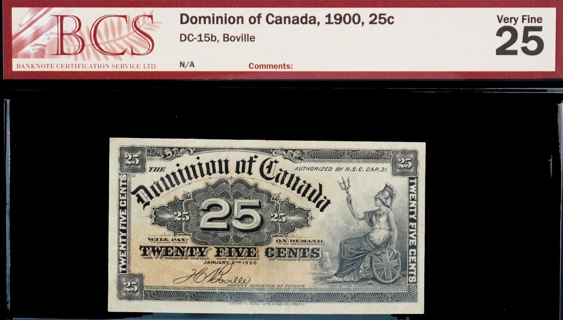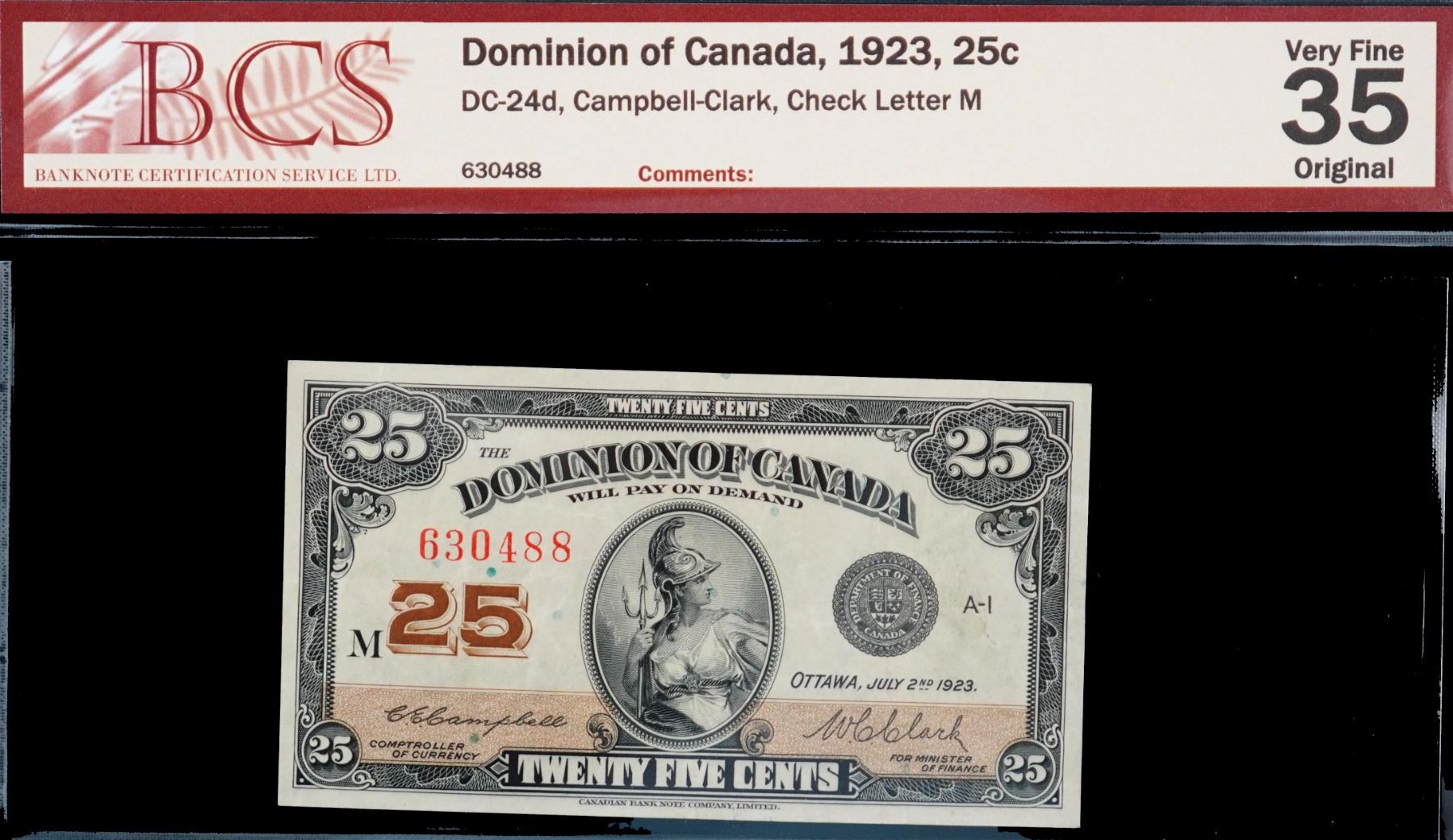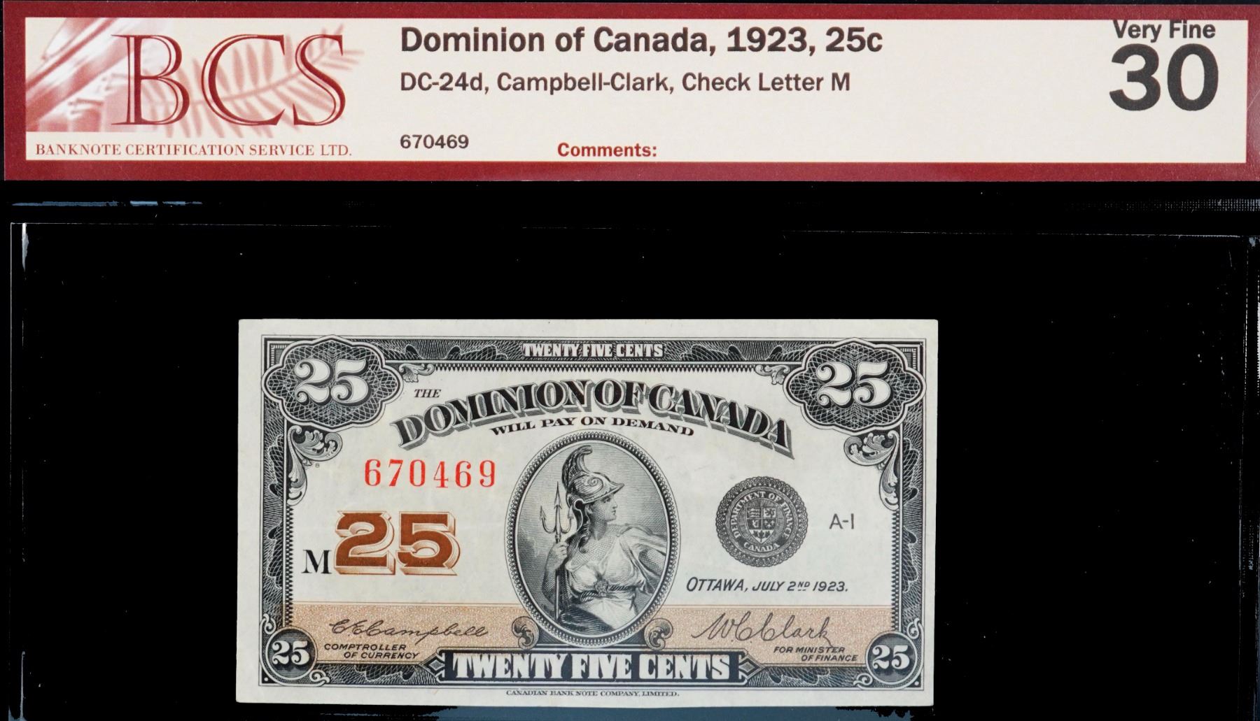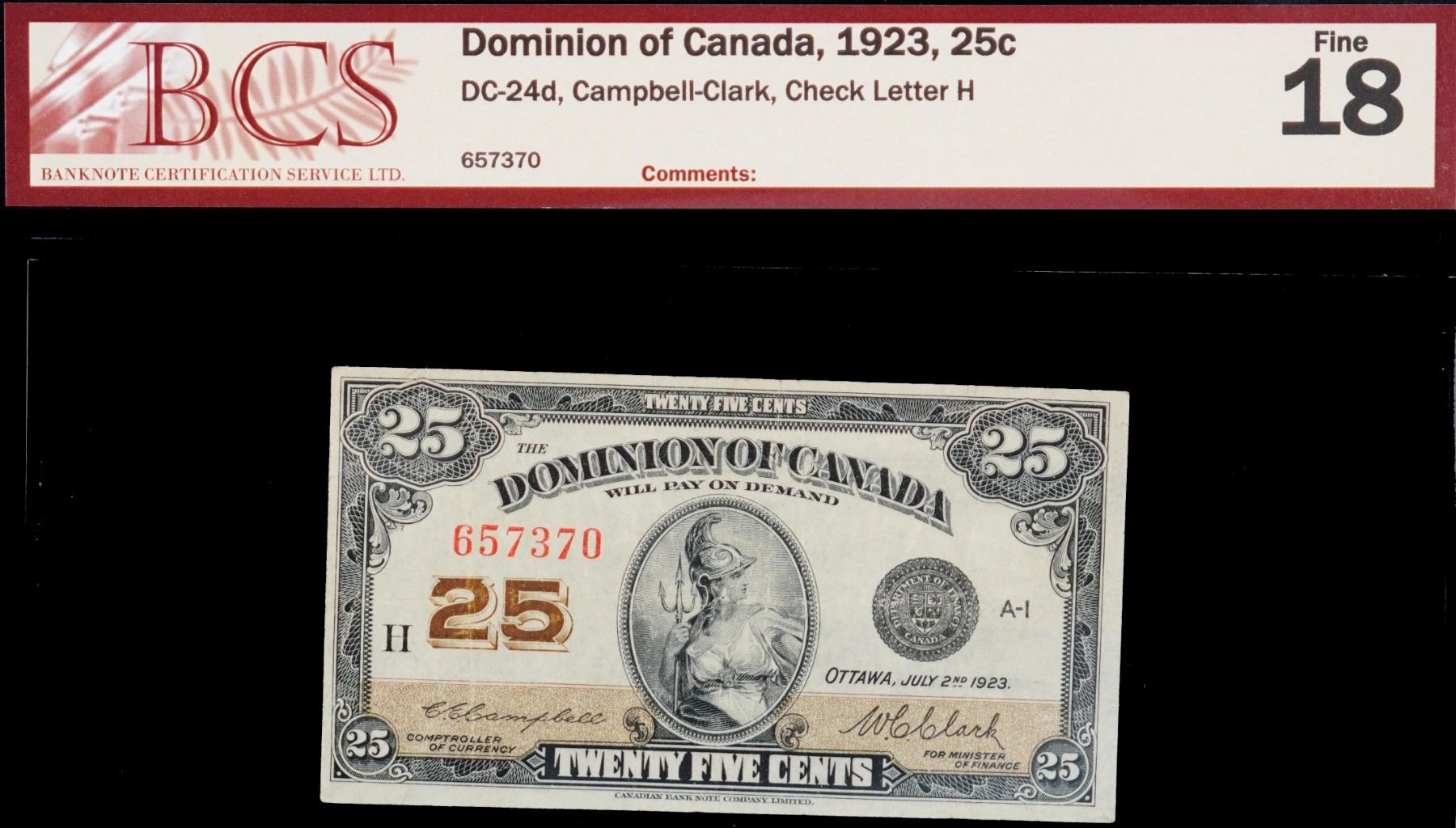 1870-1923 25 cent Shinplaster Collection. Lot of 28 notes all BCS graded Good-4 to Extra Fine-40. Average VF+. Includes several varieties, signatures, Check letters, Plate numbers. Housed in BCS red binder. A superb opportunity! A Must see!