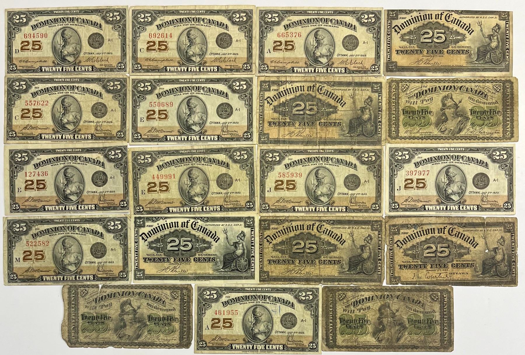 1870-1923 Shinplasters, lot of 19 notes. VG to VF+ or better. A nice lot.