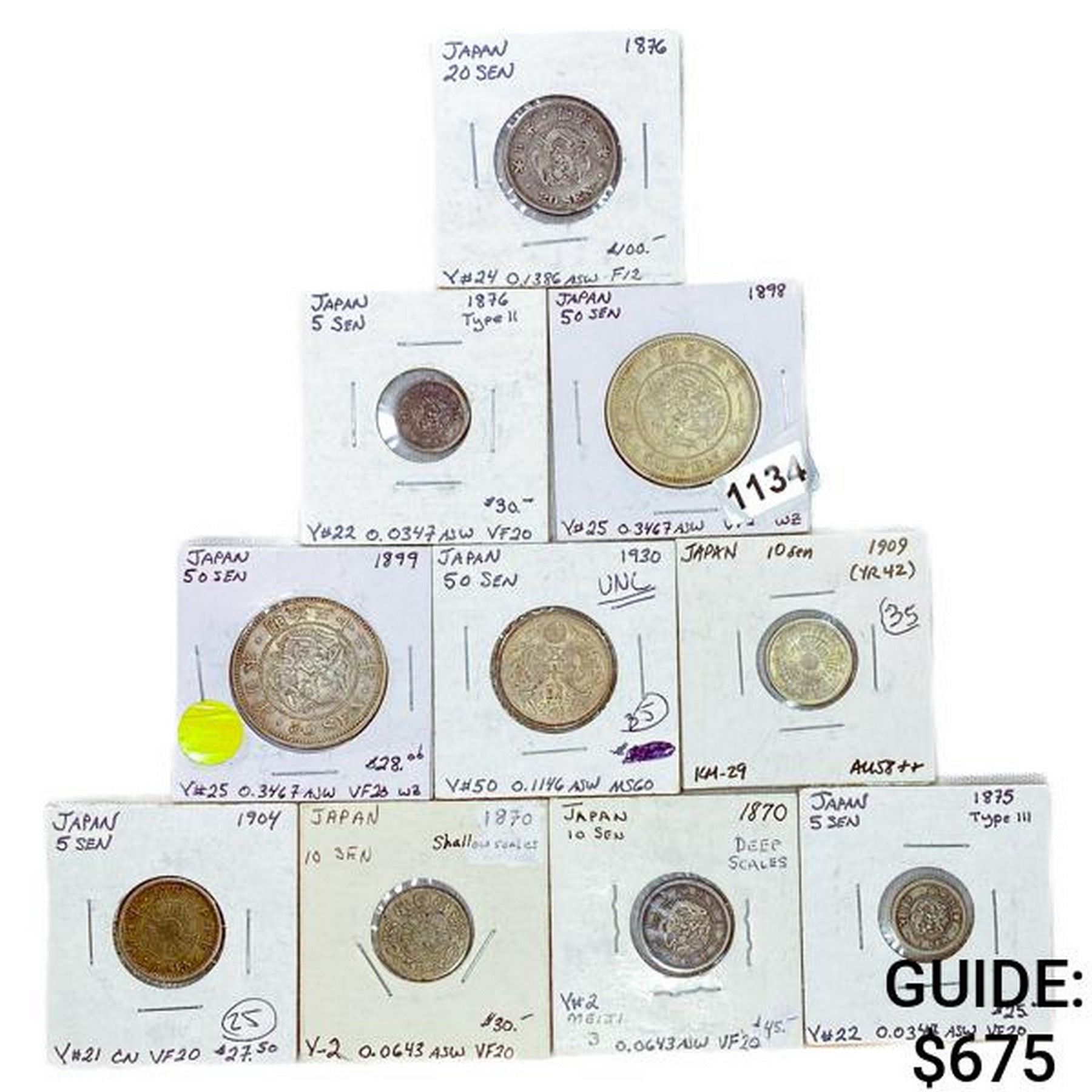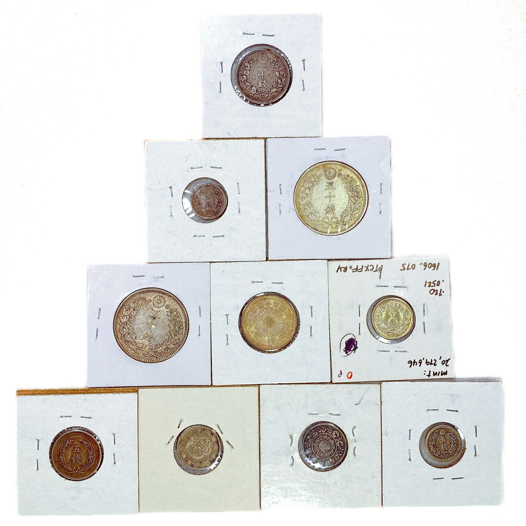 1870-1930 Japan Coinage w/ SILV (10 Coins)