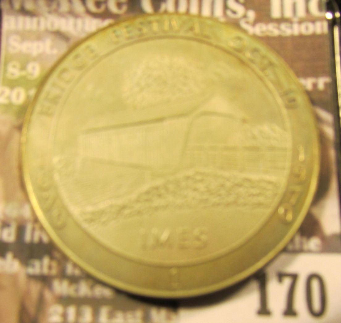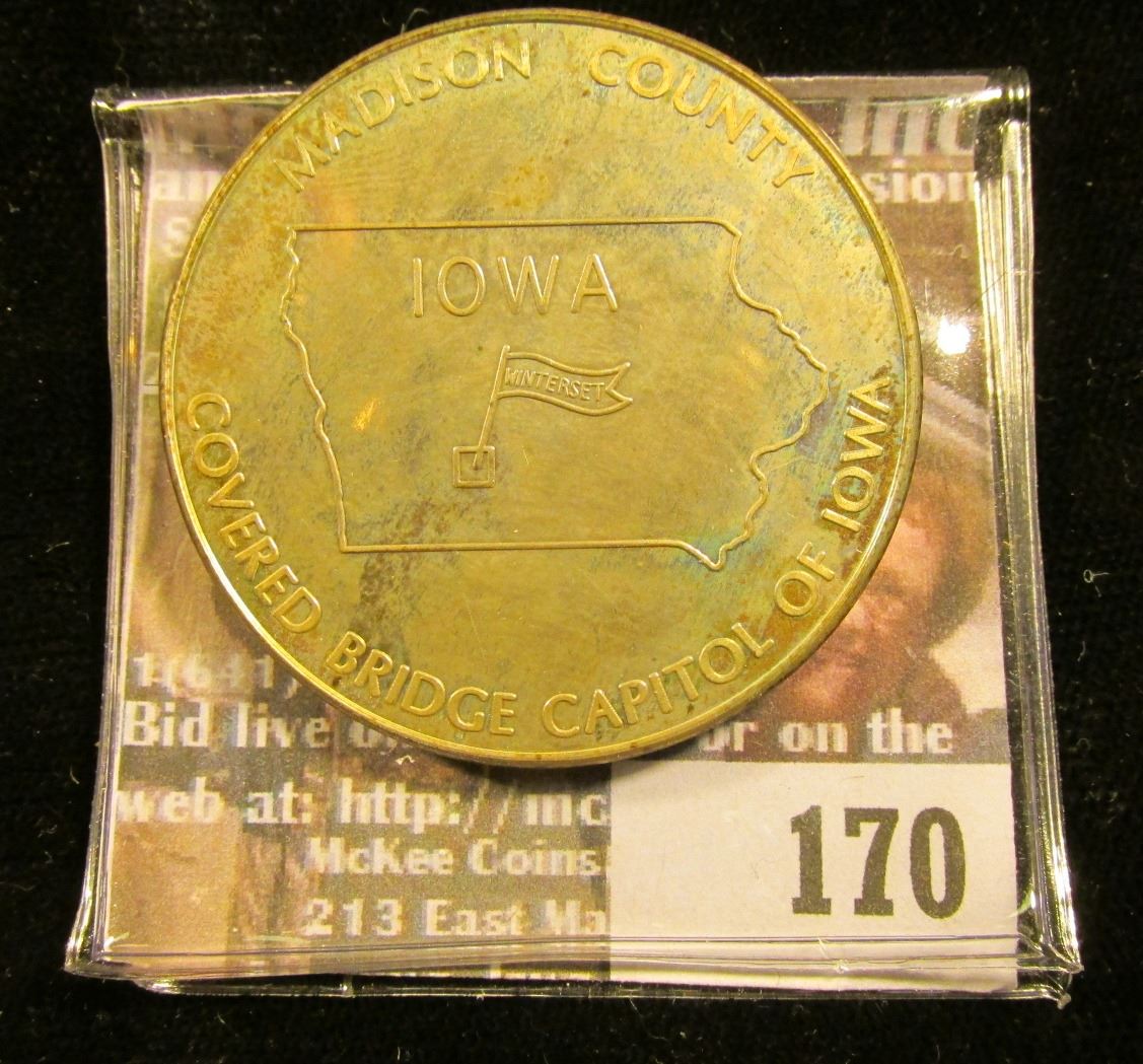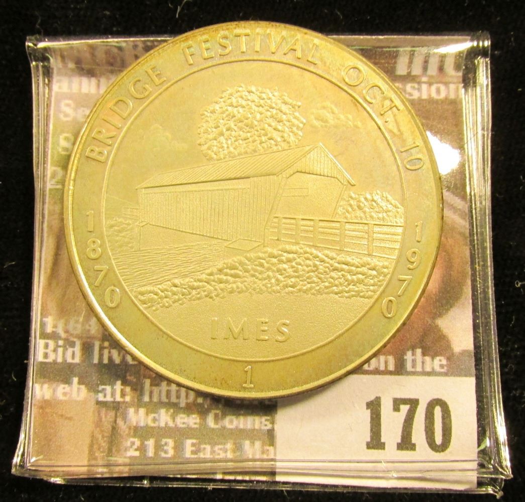 1870 1970 Bridge Festival Oct. 10 "IMES 1", "Madison County Covered Bridge Capitol of Iowa", Sterling Silver, 39mm. Light toning.