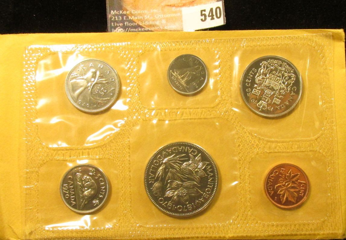 1870-1970 Royal Canadian Mint Set with Manitoba Commemorative Dollar. In original cellophane and government envelope as issued. (6 pcs.).