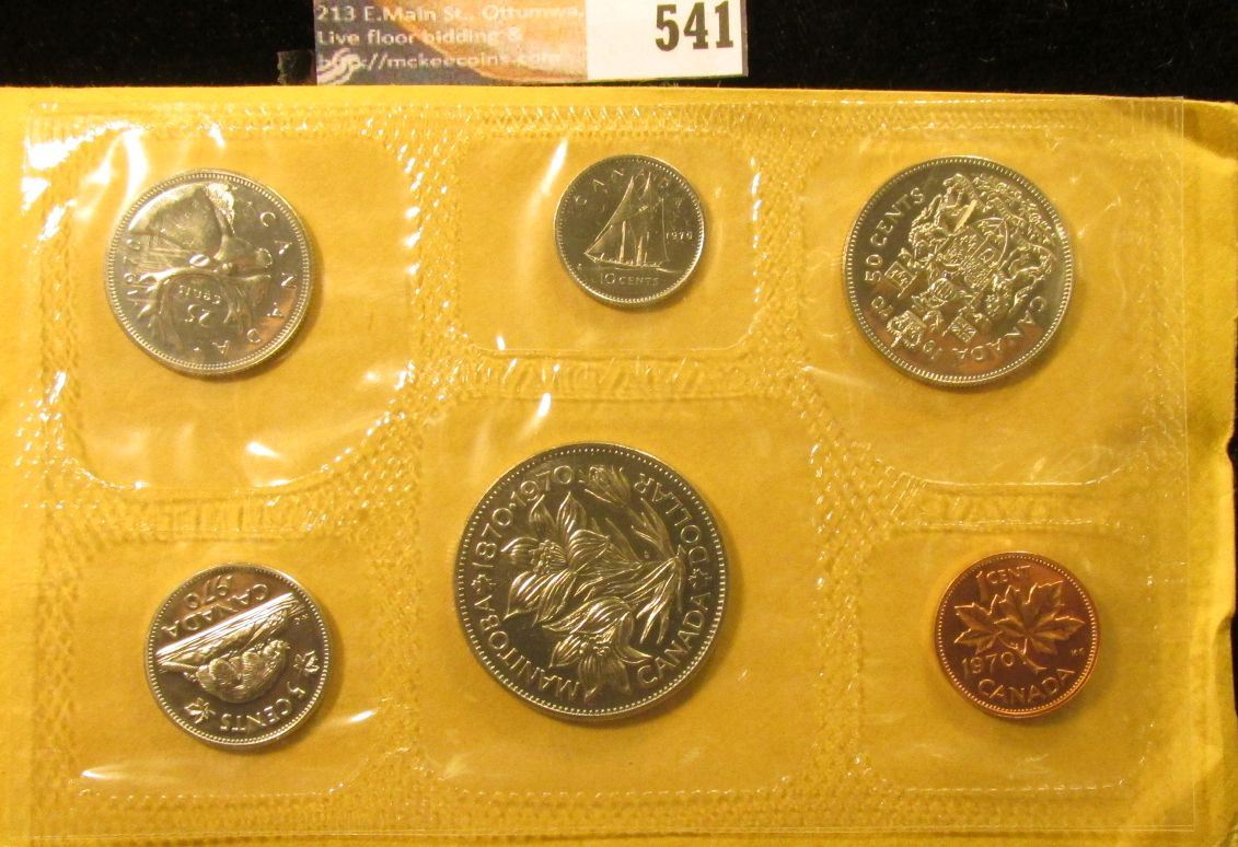 1870-1970 Royal Canadian Mint Set with Manitoba Commemorative Dollar. In original cellophane and government envelope as issued. (6 pcs.).