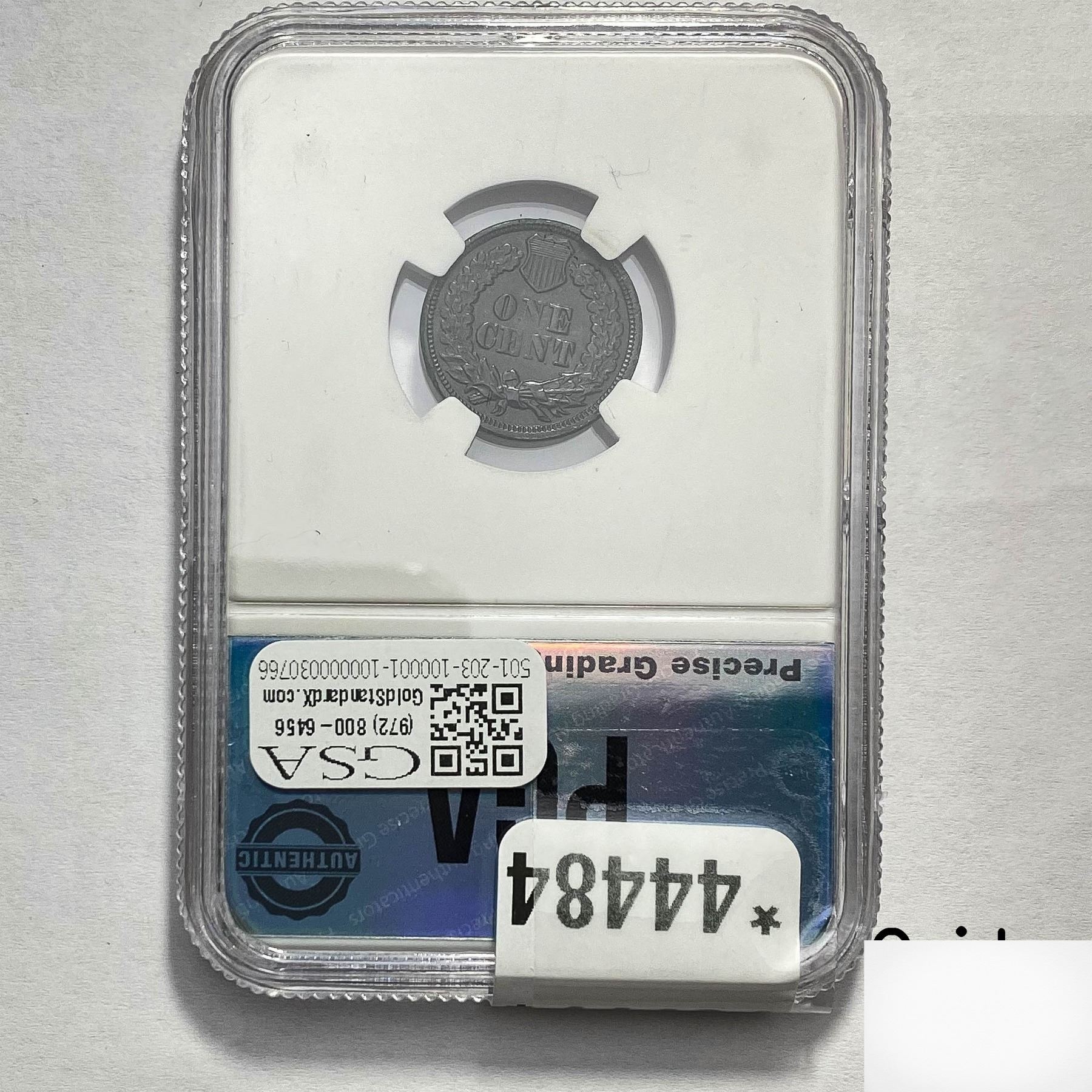 e. Coins sold referencing a third-party grading service are sold “AS IS” without any express or implied warranty, except for a guarantee by GSA that they are genuine. Removal or alteration of the holder, voids all of Bidder’s claims concerning that Product. Certain warranties may be available from the grading services and Bidders are referred to them for further details: Numismatic Guaranty Corporation (NGC), PO Box 4776, Sarasota, FL 34230, www.ngccoin.com/services/writtenguarantee.asp; Professional Coin Grading Services (PCGS), PO Box 9458, Newport Beach, CA 92658, www.pcgs.com/guarantee.html; ANACS, 6555 S. Kenton St., Ste. 303, Englewood, CO 80111; and Independent Coin Grading Co. (ICG), 7901 East Bellview, Ave., Suite 50, Englewood, CO 80111.