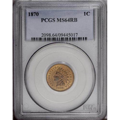 1870 1C MS64 Red and Brown PCGS. Lustrous orange surfa 1870[1C] MS64 Red and Brown PCGS.