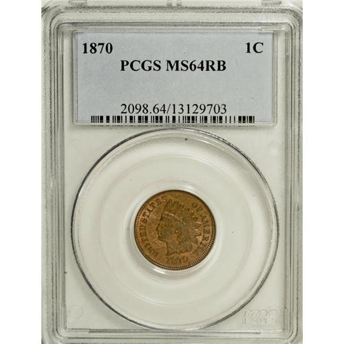 1870 1C MS64 Red and Brown PCGS. Pleasing luster emana