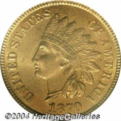 <table><tr><td><TABLE cellSpacing=0 cellPadding=0 width="100%" bgColor=#000000 border=0><TBODY> <TR><TD width="100%"><TABLE cellSpacing=1 cellPadding=3 width="100%" border=0><TBODY><TR><TD width="100%" bgColor=#79735c><FONT face=arial color=#ffffff size=3><B>Description</B> </FONT></TD></TR><TR><TD width="100%" bgColor=#ffffff><FONT face=arial size=2><B>1870 1C MS65 Red PCGS.</B></I> Ex: Richard. A crisply struck Gem with pleasing cartwheel luster and lovely orange-gold color. The virtually unabraded surfaces provide exceptional eye appeal. The C in CENT is clashed (as made) near the bridge of the Indian's nose, and the chin and lips are doubled. A splendid representative of this scarce lower mintage date. Population: 28 in 65, 4 finer (10/03). </FONT></TD></TR></TBODY></TABLE></TD></TR></TBODY></TABLE><BR><A name=PricesRealized></A><TABLE cellSpacing=0 cellPadding=0 width="100%" bgColor=#000000 border=0><TBODY><TR><TD width="100%"><TABLE cellSpacing=1 cellPadding=3 width="100%" border=0><TBODY><TR><TD width="100%" bgColor=#79735c><A name=PR><FONT face=arial color=#ffffff size=3><B>Previous Prices from Heritage Auctions</B> </FONT></A></TD></TR><TR><TD bgColor=#f6f6ed><TABLE cellSpacing=0 cellPadding=0 width="100%" border=1><TBODY><TR><TD align=middle width="33%"><B>Date</B></TD><TD align=middle width="33%"><B>Service</B></TD><TD align=middle width="33%"><B>Price</B></TD></TR><TR bgColor=whitesmoke><TD width="33%"><B>01/28/2004</B></TD><TD width="33%">PCGS</TD><TD width="33%">$5,290.00</TD></TR><TR bgColor=whitesmoke><TD width="33%"><B>05/03/2003</B></TD><TD width="33%">PCGS</TD><TD width="33%">$4,370.00</TD></TR><TR bgColor=whitesmoke><TD width="33%"><B>06/08/2002</B></TD><TD width="33%">PCGS</TD><TD width="33%">$3,680.00</TD></TR><TR bgColor=whitesmoke><TD width="33%"><B>10/06/2001</B></TD><TD width="33%">NGC</TD><TD width="33%">$2,760.00</TD></TR><TR bgColor=whitesmoke><TD width="33%"><B>06/04/1999</B></TD><TD width="33%">PCGS</TD><TD width="33%">$2,760.00</TD></TR><TR bgColor=whitesmoke><TD width="33%"><B>05/01/1999</B></TD><TD width="33%">PCGS</TD><TD width="33%">$3,220.00</TD></TR><TR bgColor=whitesmoke><TD width="33%"><B>08/01/1998</B></TD><TD width="33%">PCGS</TD><TD width="33%">$3,450.00</TD></TR></TBODY></TABLE></TD></TR><TR><TD bgColor=#ffffff><FONT face=arial size=1 ?>PLEASE NOTE: All prices realized reflect the final hammer price PLUS the buyer's premium in auctions that charge a buyer's premium. Each item has a notation at the top of the listing indicating whether that lot included a buyer's premium. Example: A item that sells with a final hammer price of $100 and a 20% buyer's premium will display with a price realized of $120. All information listed is intended to be as accurate as possible, but errors are possible. Please use this guide carefully and inform us of any inaccuracies. </FONT></TD></TR></TBODY></TABLE></TD></TR></TBODY></TABLE><BR><TABLE cellSpacing=0 cellPadding=0 width="100%" bgColor=#000000 border=0><TBODY><TR><TD width="100%"><TABLE cellSpacing=1 cellPadding=3 width="100%" border=0><TBODY><TR><TD width="100%" bgColor=#79735c colSpan=6><FONT face=arial color=#ffffff size=3><B>Price Guide*</B> </FONT></TD></TR><TR bgColor=#f6f6ed><TD align=middle><B>Grade</B> </TD><TD align=middle><B>Coin World<BR>(Trends)</B> </TD><TD align=middle><B>Numismedia<BR>Retail</B> </TD><TD align=middle><B>Numismedia<BR>Wholesale</B> </TD><TD align=middle><B>Coin<BR>Universe</B> </TD><TD align=middle><B>Heritage<BR>Value Index</B> </TD></TR><TR bgColor=#ffffff><TD align=middle>64</TD><TD align=right>$2,000.00</TD><TD align=right>---</TD><TD align=right>$1,025.00</TD><TD align=right>$2,450.00</TD><TD align=right>$1,062.50</TD></TR><TR style="FONT-WEIGHT: bold" bgColor=#cccfdd><TD align=middle>65</TD><TD align=right>$5,000.00</TD><TD align=right>---</TD><TD align=right>$3,850.00</TD><TD align=right>$6,750.00</TD><TD align=right>$3,475.50</TD></TR><TR bgColor=#ffffff><TD align=middle>66</TD><TD align=right>$18,500.00</TD><TD align=right>---</TD><TD align=right>$8,225.00</TD><TD align=right>$16,500.00</TD><TD align=right>$12,250.00</TD></TR><TR bgColor=#ffffff><TD colSpan=6><FONT size=1>*All information listed is intended to be as accurate as possible, but errors are possible. No item may be returned or refused based on this information which is provided as a service to our customers. You should contact each pricing source directly to determine the accuracy of this information. </FONT></TD></TR></TBODY></TABLE></TD></TR></TBODY></TABLE><BR><TABLE cellSpacing=0 cellPadding=0 width="100%" bgColor=#000000 border=0><TBODY><TR><TD width="100%"><TABLE cellSpacing=1 cellPadding=3 width="100%" border=0><TBODY><TR><TD width="100%" bgColor=#79735c><FONT face=arial color=#ffffff size=3><B>Population Guide</B> </FONT></TD></TR><TR bgColor=#ffffff><TD align=middle><!-- Begin Output of Population Grid--><TABLE cellSpacing=0 cellPadding=0 width="100%" border=0><TBODY><TR><TD vAlign=center><TABLE cellSpacing=0 width="100%" border=1 cellsadding="3"><TBODY><TR><TD vAlign=center><TABLE cellSpacing=0 cellPadding=3 width="100%" border=1><TBODY><TR><TD vAlign=center align=middle bgColor=#f0f1e8 colSpan=2 <CENTER><FONT face=Arial size=2><B>PCGS Pop </B></FONT><CENTER></CENTER></TD><TD vAlign=center align=middle bgColor=#f0f1e8 colSpan=2><CENTER><FONT face=Arial size=2><B>NGC Pop</B></CENTER></FONT></TD></TR><TR><TD vAlign=center><FONT face=Arial size=2>(65)</FONT> </TD><TD vAlign=center align=right><FONT face=Arial size=2>28</FONT> </TD><TD vAlign=center><FONT face=Arial size=2>(65)</FONT> </TD><TD vAlign=center align=right><FONT face=Arial size=2>0</FONT> </TD></TR><TR><TD vAlign=center><FONT face=Arial size=2>(>65)</FONT> </TD><TD vAlign=center align=right><FONT face=Arial size=2>4</FONT> </TD><TD vAlign=center><FONT face=Arial size=2>(>65)</FONT> </TD><TD vAlign=center align=right><FONT face=Arial size=2>0</FONT> </TD></TR></TBODY></TABLE></TD></TR></TBODY></TABLE></TD></TR></TBODY></TABLE><!-- End Outp