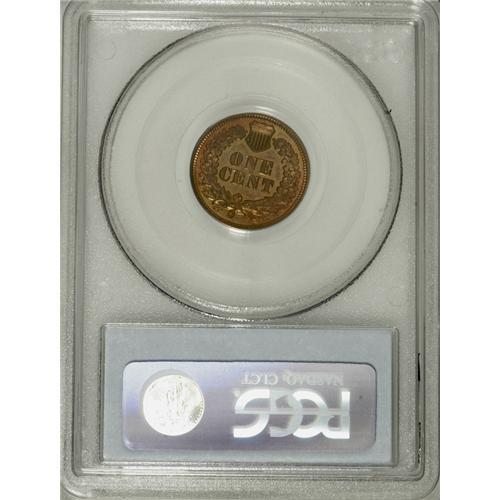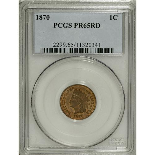 <B>1870 1C PR65 Red PCGS.</B></I> Shallow N in ONE. This fire-red Gem is meticulously struck and void of marks. Only marginal carbon denies an even finer third party assessment. Population: 23 in 65 Cameo, 4 finer (2/07).<BR><BR><b>Shipping:</b> Coins & Currency (<a target="_blank" href="http://www.heritageauctions.com/common/shipping.php">view shipping information</a>)