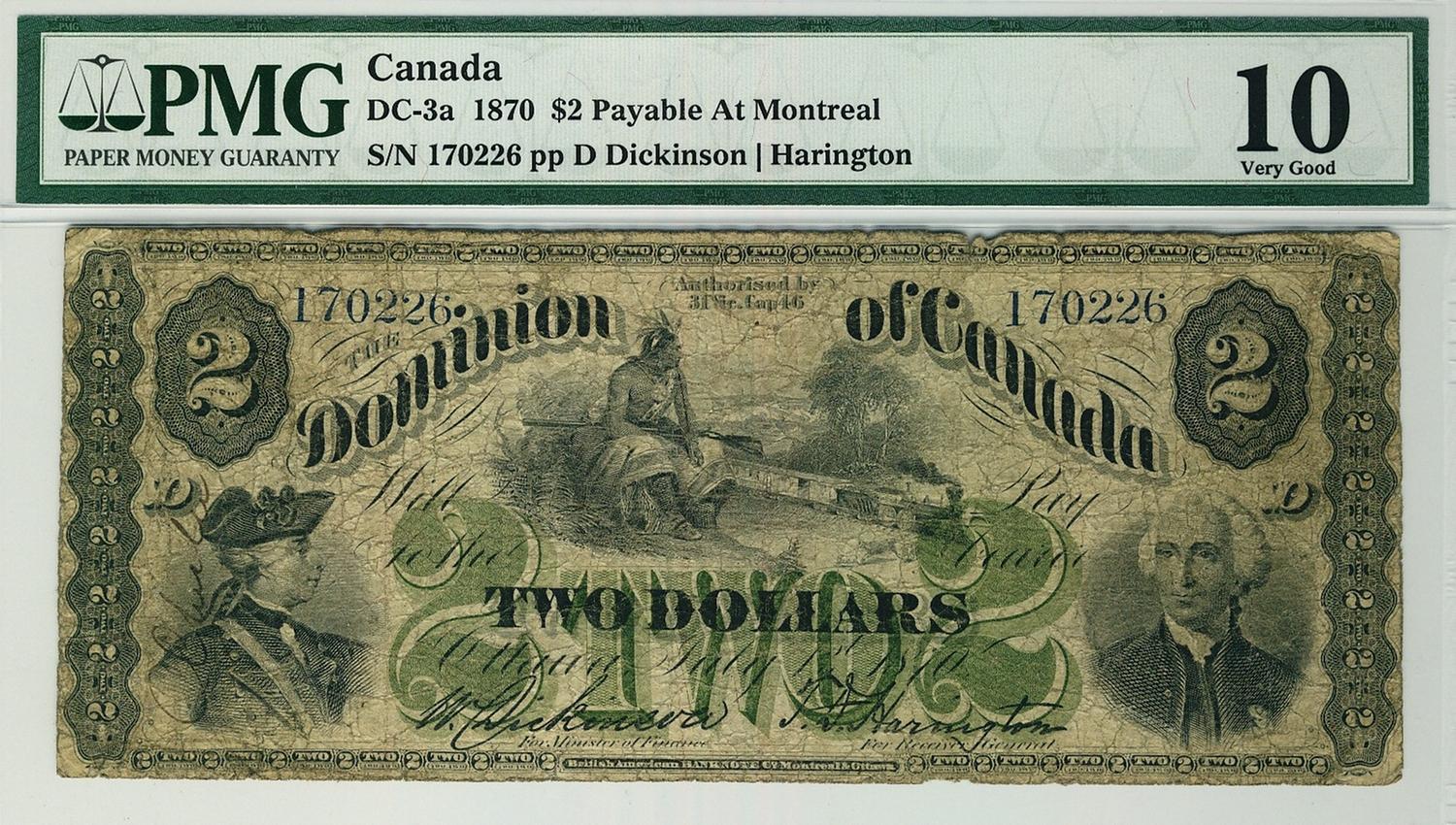 1870 $2 170226 DC-3a PMG VG10 Rare note, seldom offered.