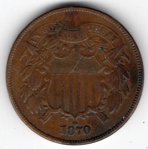 1870 2 Cent Piece. AU Key Date. RARE COIN!