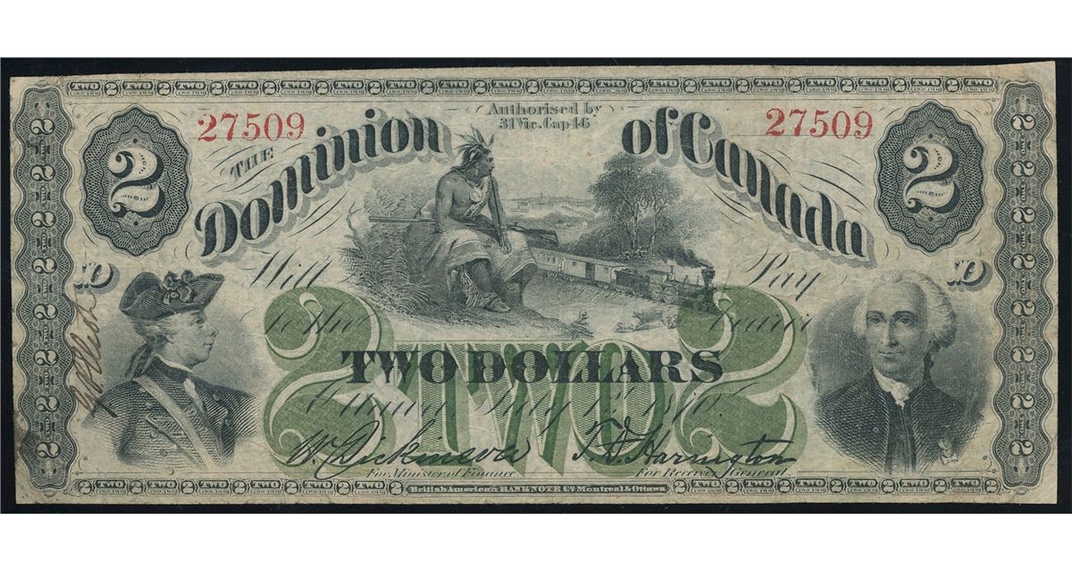 1870 $2 DC-3b #27509, PCGS F15. Minor mounting remnants on back. Extremely rare for issue and grade. Eye appeal of a VF example.. Rare this nice.