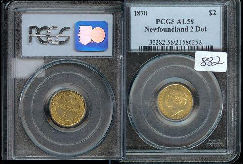 1870 "2 Dot" $2 Nfld Gold PCGS AU-58, well struck with strong lustre. A very nice example.