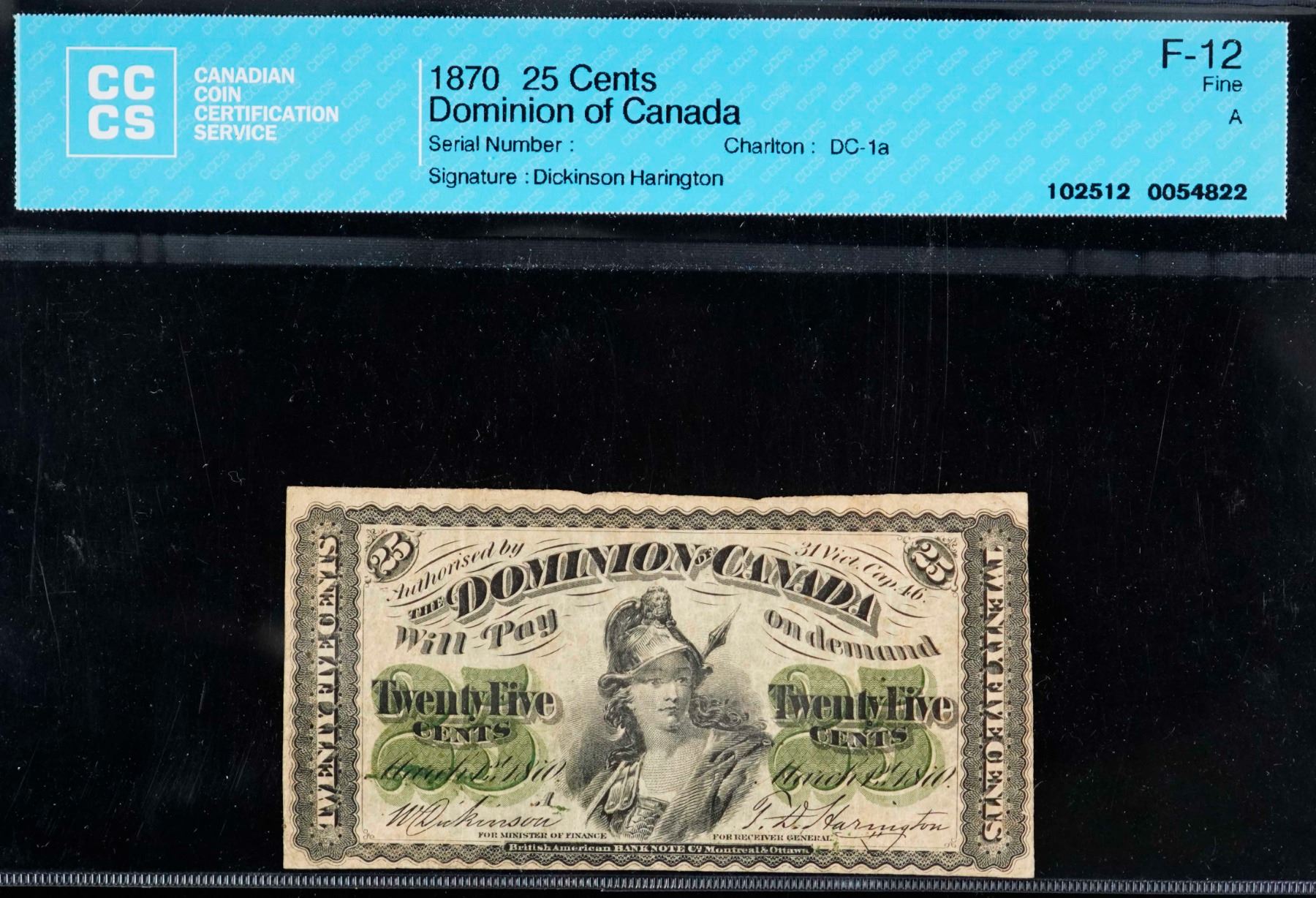 1870 25 Cents DC-1a "Letter A" CCCS F12