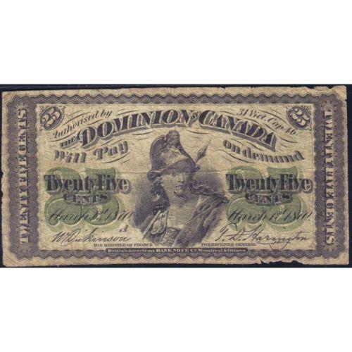 1870 Twenty-Five Cents, Series A, DC-1a PMG Very Good-10. A couple of thin spots and pinholes