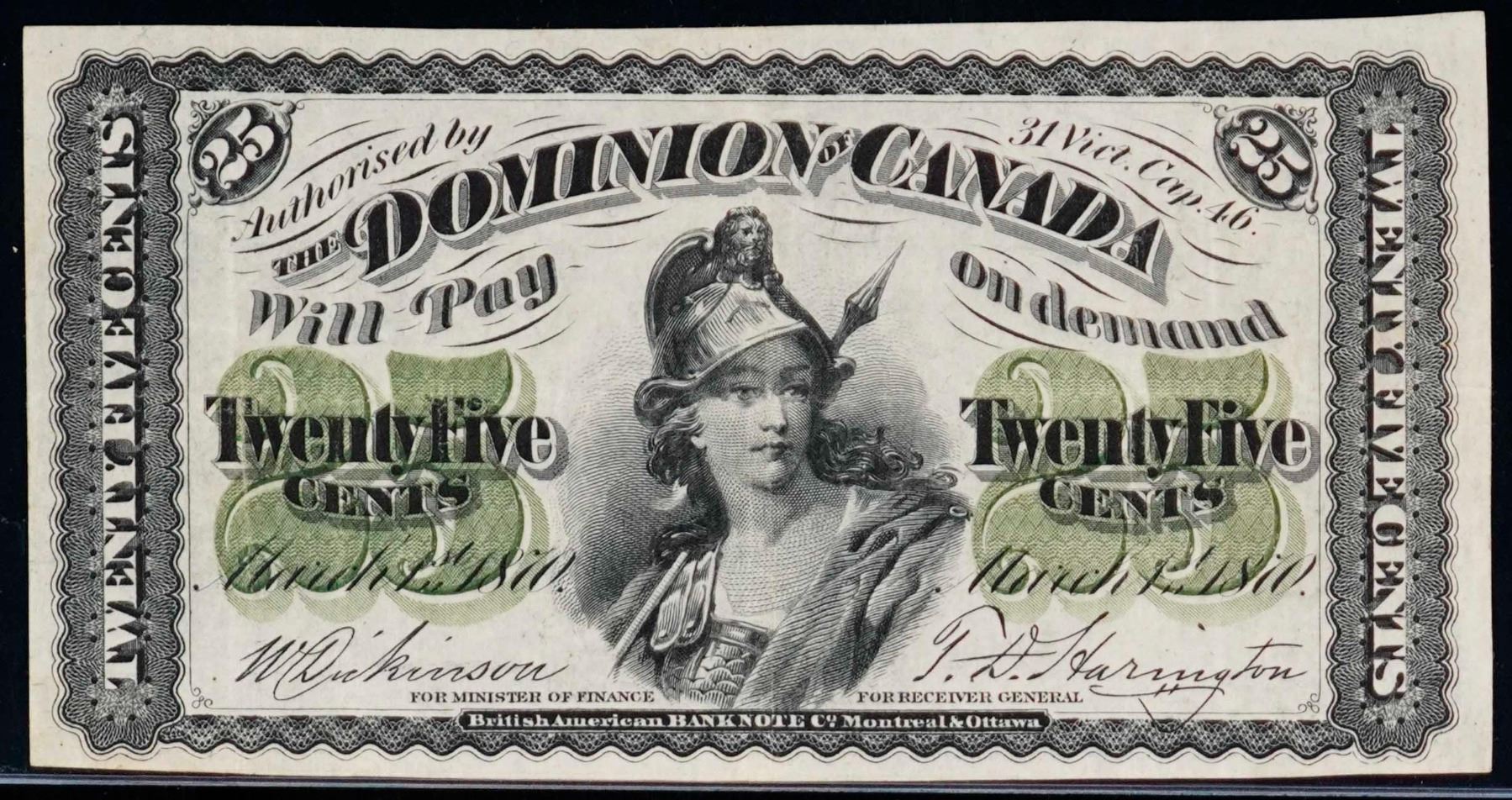 1870 25 Cents - Shinplaster DC-1c "Plain" A bright VF-EF example.