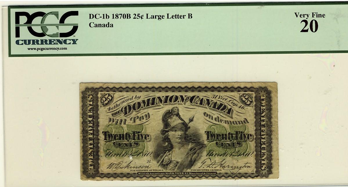 1870 25¢ DC-1b Large Letter B PCGS VF20
