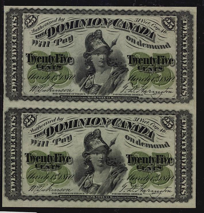1870 25¢ DC-1c Plain uncut pair. AU-UNC. Should be viewed.