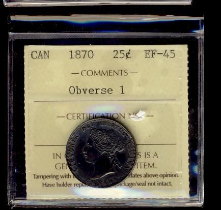 1870 25¢ Obv 1 ICCS EF45.
