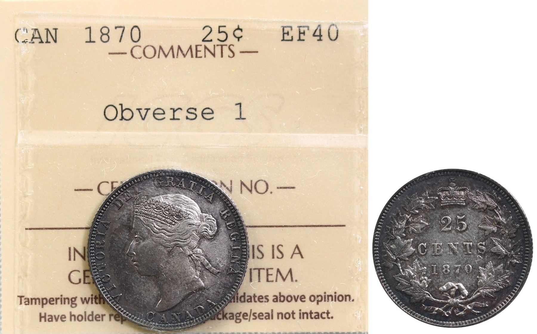 1870 25¢ "Obv 1" ICCS Extra Fine-40