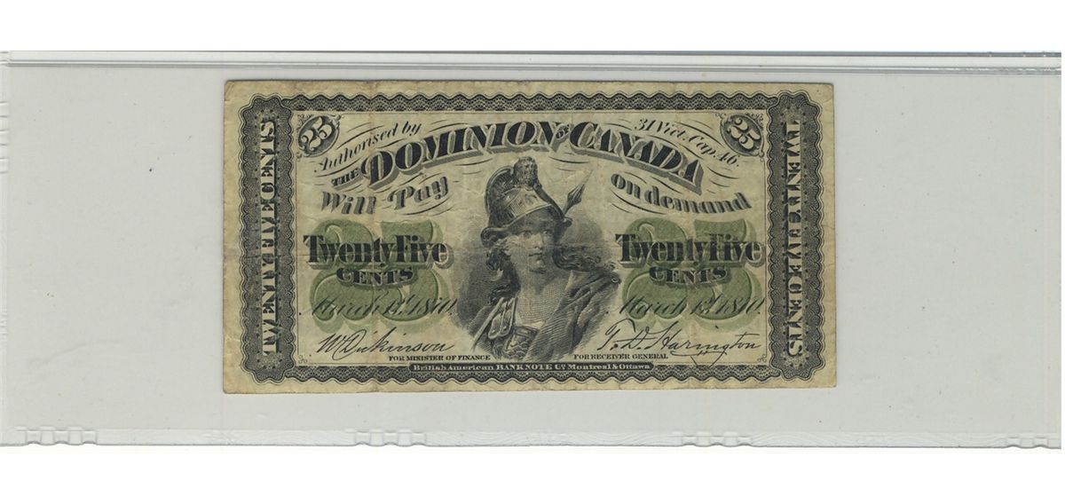1870 25¢ PMG VF-25, DC-1c, Plain No Series.