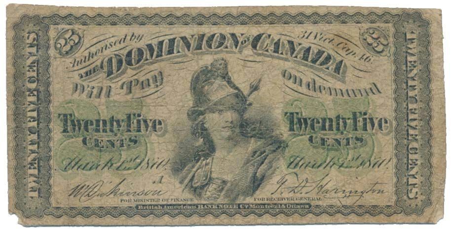 1870 25¢ Shinplaster DC-1a, PMG F12 Net.