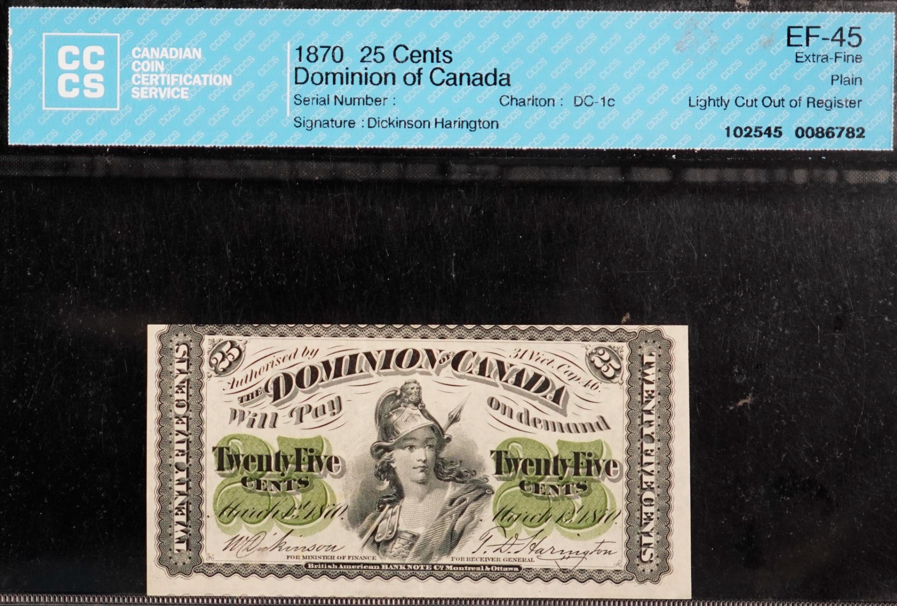 1870 25¢ "Shinplaster" DC-1c CCCS Choice Extra Fine-45. Extremely bright example.