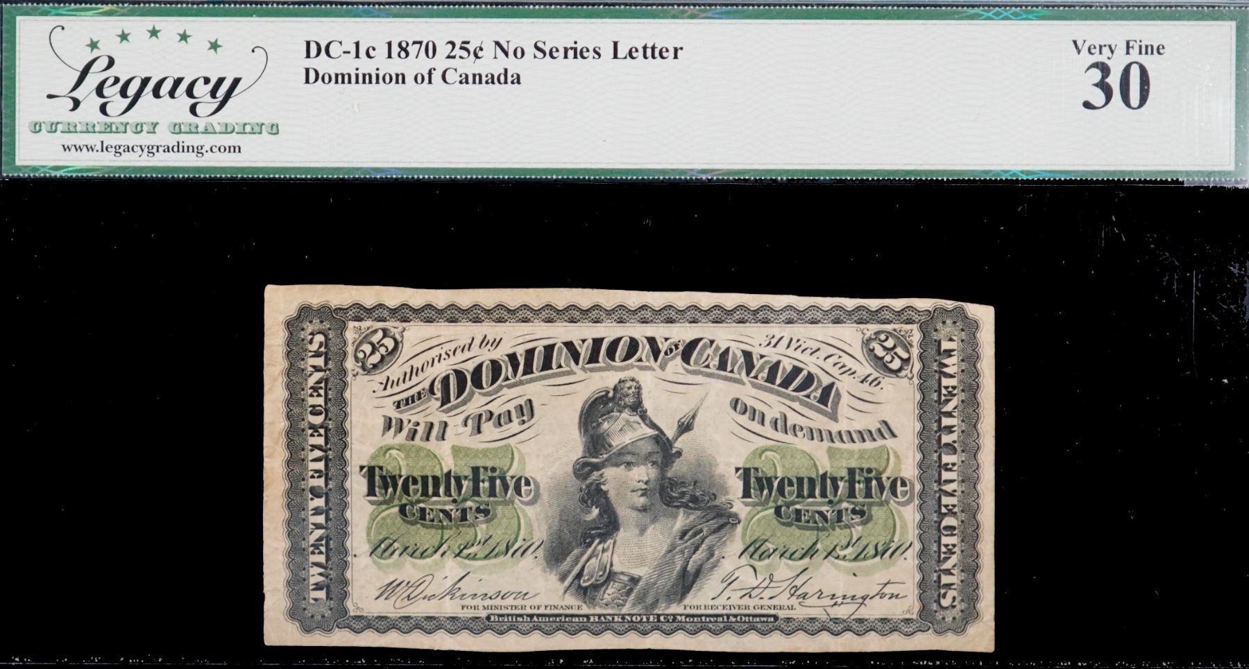 1870 25¢ "Shinplaster" DC-1c Legacy Currency Grading Choice Very Fine-30