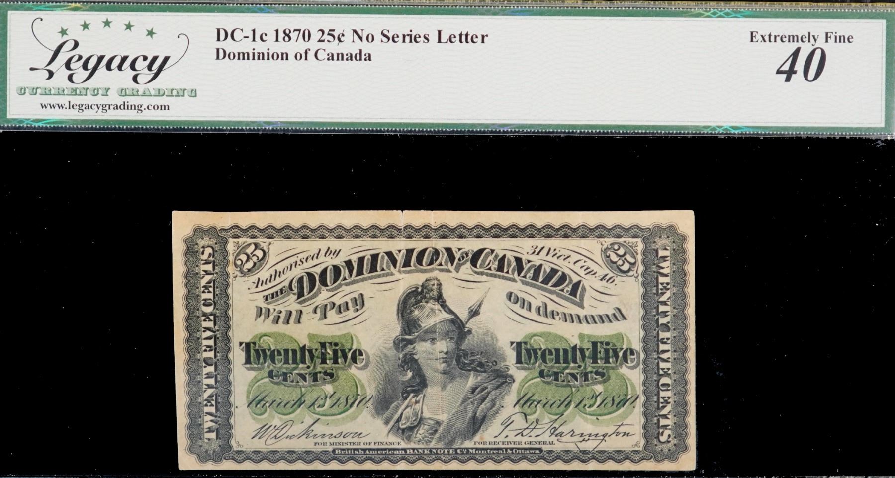 1870 25¢ "Shinplaster" DC-1c Legacy Currency Grading Extra Fine-40 minor pinholes