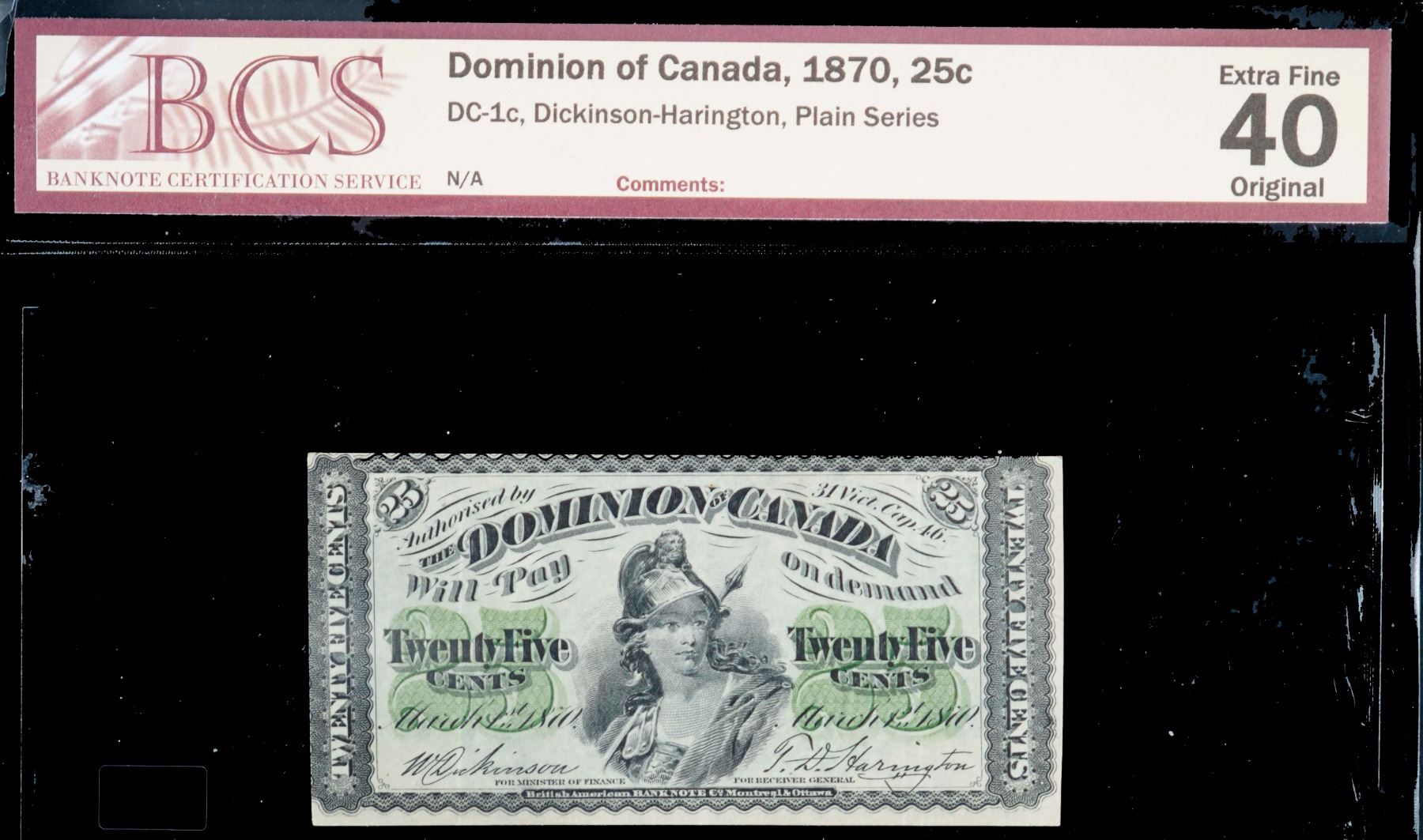 1870 25¢ "Shinplaster" DC-1c, "Plain series" BCS Extra Fine Original.