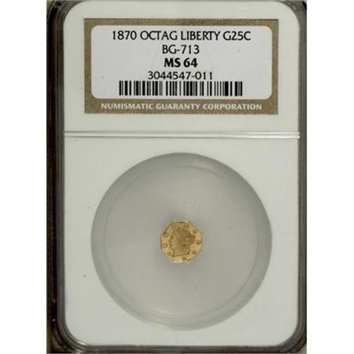 1870 25C Liberty Octagonal 25 Cents, BG-713, R.4, MS64