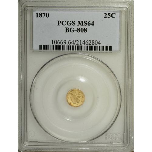 1870 25C Liberty Round 25 Cents, BG-808, R.3, MS64 P