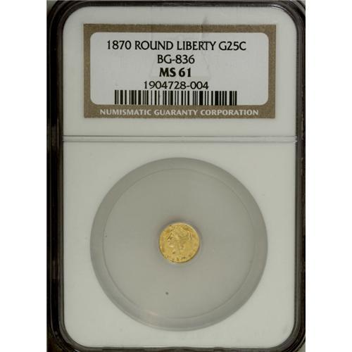 1870 25C Liberty Round 25 Cents, BG-836, High R.7, MS6