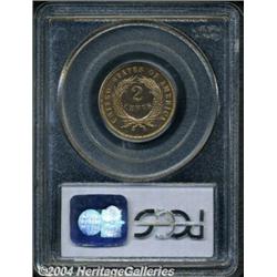 <table><tr><td><table><tr><td>1870 2C PR64 Red PCGS. Fully struck and well preserved, with flashy, highly reflective fields, numerous wispy die striations (as struck) on each side, a couple of tiny contact marks on the reverse, and some light planchet chatter (as struck) on the lower portion of the obverse shield. Population: 37 in 64, 44 finer (2/04). <BR><BR><B>Important notice:</B> Heritage usually auctions material at the rate of 200-250 lots per hour. On some occasions eBay Live bid software or the Internet may not be able to keep up with the pace of the auction. We recommend placing a realistic absentee bid now as insurance to avoid disappointment. Occasionally the auctioneer may eliminate or reject an eBay Live bid, and the auctioneer may also reopen a lot after the close of the eBay live bidding (usually because we missed an audience bid), and may reject your bid even if it shows you as the winning bidder. By bidding via eBay Live, you agree that Heritage may award the lot to another bidder at its sole discretion under the circumstances described above or any other reasonable circumstances. Since eBay bids are not shown to us until we open the lot on the floor, we treat those bids just like floor bids. In most cases the floor responds before the eBay bid is presented to us, due to Internet lag time, so for consistency we have made it a policy that floor bids are always considered first over tie eBay live bids. Also please note that all Heritage lots purchased through eBay Live carry a 20% Buyer's Premium. Please make sure you read the Terms and Conditions before you bid. <BR><BR><B>IMPORTANT ANNOUNCEMENT ABOUT RESERVES:</B> Heritage now divulges all reserves on its web site 7 days before every auction. If you want to know whether the reserve on this lot has been met, and if not, what the reserve amount is, please visit this lot page on the HeritageCoin.com web site, or email: bid@HeritageGalleries.com </span></font></td></tr></table></td></tr></table>