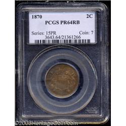 <table><tr><td><TABLE cellSpacing=0 cellPadding=0 width="100%" bgColor=#000000 border=0><TBODY> <TR><TD width="100%"><TABLE cellSpacing=1 cellPadding=3 width="100%" border=0><TBODY><TR><TD width="100%" bgColor=#79735c><FONT face=arial color=#ffffff size=3><B>Description</B> </FONT></TD></TR><TR><TD width="100%" bgColor=#ffffff><FONT face=arial size=2><B>1870 2C PR64 Red and Brown PCGS.</B></I> The deeply reflective surfaces of this near-Gem quality proof possess a mixture of fiery-red, blue, and rich brown colors that combine to create an attractive toned finish that is popular among many collectors.<BR><I>From The New Millennium Collection.</B></I> </FONT></TD></TR></TBODY></TABLE></TD></TR></TBODY></TABLE><BR><A name=PricesRealized></A><TABLE cellSpacing=0 cellPadding=0 width="100%" bgColor=#000000 border=0><TBODY><TR><TD width="100%"><TABLE cellSpacing=1 cellPadding=3 width="100%" border=0><TBODY><TR><TD width="100%" bgColor=#79735c><A name=PR><FONT face=arial color=#ffffff size=3><B>Previous Prices from Heritage Auctions</B> </FONT></A></TD></TR><TR><TD bgColor=#f6f6ed><TABLE cellSpacing=0 cellPadding=0 width="100%" border=1><TBODY><TR><TD align=middle width="33%"><B>Date</B></TD><TD align=middle width="33%"><B>Service</B></TD><TD align=middle width="33%"><B>Price</B></TD></TR><TR bgColor=whitesmoke><TD width="33%"><B>09/20/2003</B></TD><TD width="33%">NGC</TD><TD width="33%">$483.00</TD></TR><TR bgColor=whitesmoke><TD width="33%"><B>03/01/2003</B></TD><TD width="33%">PCGS</TD><TD width="33%">$507.15</TD></TR><TR bgColor=whitesmoke><TD width="33%"><B>08/07/2000</B></TD><TD width="33%">PCGS</TD><TD width="33%">$431.25</TD></TR><TR bgColor=whitesmoke><TD width="33%"><B>09/13/1997</B></TD><TD width="33%">PCGS</TD><TD width="33%">$661.25</TD></TR><TR bgColor=whitesmoke><TD width="33%"><B>03/01/1999</B></TD><TD width="33%">PCGS</TD><TD width="33%">$748.00</TD></TR></TBODY></TABLE></TD></TR><TR><TD bgColor=#ffffff><FONT face=arial size=1 ?>PLEASE NOTE: All prices realized reflect the final hammer price PLUS the buyer's premium in auctions that charge a buyer's premium. Each item has a notation at the top of the listing indicating whether that lot included a buyer's premium. Example: A item that sells with a final hammer price of $100 and a 20% buyer's premium will display with a price realized of $120. All information listed is intended to be as accurate as possible, but errors are possible. Please use this guide carefully and inform us of any inaccuracies. </FONT></TD></TR></TBODY></TABLE></TD></TR></TBODY></TABLE><BR><TABLE cellSpacing=0 cellPadding=0 width="100%" bgColor=#000000 border=0><TBODY><TR><TD width="100%"><TABLE cellSpacing=1 cellPadding=3 width="100%" border=0><TBODY><TR><TD width="100%" bgColor=#79735c colSpan=6><FONT face=arial color=#ffffff size=3><B>Price Guide*</B> </FONT></TD></TR><TR bgColor=#f6f6ed><TD align=middle><B>Grade</B> </TD><TD align=middle><B>Coin World<BR>(Trends)</B> </TD><TD align=middle><B>Numismedia<BR>Retail</B> </TD><TD align=middle><B>Numismedia<BR>Wholesale</B> </TD><TD align=middle><B>Coin<BR>Universe</B> </TD><TD align=middle><B>Heritage<BR>Value Index</B> </TD></TR><TR bgColor=#ffffff><TD align=middle>63</TD><TD align=right>---</TD><TD align=right>$470.00</TD><TD align=right>$392.00</TD><TD align=right>$465.00</TD><TD align=right>$302.67</TD></TR><TR style="FONT-WEIGHT: bold" bgColor=#cccfdd><TD align=middle>64</TD><TD align=right>---</TD><TD align=right>$570.00</TD><TD align=right>$456.00</TD><TD align=right>$550.00</TD><TD align=right>$377.00</TD></TR><TR bgColor=#ffffff><TD align=middle>65</TD><TD align=right>---</TD><TD align=right>$970.00</TD><TD align=right>$775.00</TD><TD align=right>$790.00</TD><TD align=right>$555.17</TD></TR><TR bgColor=#ffffff><TD colSpan=6><FONT size=1>*All information listed is intended to be as accurate as possible, but errors are possible. No item may be returned or refused based on this information which is provided as a service to our customers. You should contact each pricing source directly to determine the accuracy of this information. </FONT></TD></TR></TBODY></TABLE></TD></TR></TBODY></TABLE><BR><TABLE cellSpacing=0 cellPadding=0 width="100%" bgColor=#000000 border=0><TBODY><TR><TD width="100%"><TABLE cellSpacing=1 cellPadding=3 width="100%" border=0><TBODY><TR><TD width="100%" bgColor=#79735c><FONT face=arial color=#ffffff size=3><B>Population Guide</B> </FONT></TD></TR><TR bgColor=#ffffff><TD align=middle><!-- Begin Output of Population Grid--><TABLE cellSpacing=0 cellPadding=0 width="100%" border=0><TBODY><TR><TD vAlign=center><TABLE cellSpacing=0 width="100%" border=1 cellsadding="3"><TBODY><TR><TD vAlign=center><TABLE cellSpacing=0 cellPadding=3 width="100%" border=1><TBODY><TR><TD vAlign=center align=middle bgColor=#f0f1e8 colSpan=2 <CENTER><FONT face=Arial size=2><B>PCGS Pop </B></FONT><CENTER></CENTER></TD><TD vAlign=center align=middle bgColor=#f0f1e8 colSpan=2><CENTER><FONT face=Arial size=2><B>NGC Pop</B></CENTER></FONT></TD></TR><TR><TD vAlign=center><FONT face=Arial size=2>(64)</FONT> </TD><TD vAlign=center align=right><FONT face=Arial size=2>79</FONT> </TD><TD vAlign=center><FONT face=Arial size=2>(64)</FONT> </TD><TD vAlign=center align=right><FONT face=Arial size=2>29</FONT> </TD></TR><TR><TD vAlign=center><FONT face=Arial size=2>(>64)</FONT> </TD><TD vAlign=center align=right><FONT face=Arial size=2>45</FONT> </TD><TD vAlign=center><FONT face=Arial size=2>(>64)</FONT> </TD><TD vAlign=center align=right><FONT face=Arial size=2>51</FONT> </TD></TR></TBODY></TABLE></TD></TR></TBODY></TABLE></TD></TR></TBODY></TABLE><!-- End Output of Population Grid--></TD></TR></TBODY></TABLE></TD></TR></TBODY></TABLE><BR><TABLE cellSpacing=0 cellPadding=0 width="100%" bgColor=#000000 border=0><TBODY><TR> Important notice: Heritage usually auctions material at the rate of 200-250 lots per hour. On some occasions eBay Live bid software or the Internet may not be able to keep up with the pace of the auction. We 