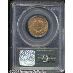 <B>1870<2C> PR65 Red PCGS.</B></I> This proof issue, which Breen in his <I>Complete Encyclopedia of U.S. and Colonial Coins,</B></I> says has weak stripes at the center, reveals sharp detail throughout on this specimen. The even, bright apricot-gold patina enhances the overall eye appeal of this Two Cent piece. A few light toning spots within the central portion of the shield do not detract, but a light diagonal scratch that bisects the lower-left wreath on the reverse limits the grade. Population: 35 in 65, 9 finer (3/04). <BR><BR><B>Important notice:</B> Heritage usually auctions material at the rate of 200-250 lots per hour. On some occasions eBay Live bid software or the Internet may not be able to keep up with the pace of the auction. We recommend placing a realistic absentee bid now as insurance to avoid disappointment. Occasionally the auctioneer may eliminate or reject an eBay Live bid, and the auctioneer may also reopen a lot after the close of the eBay live bidding (usually because we missed an audience bid), and may reject your bid even if it shows you as the winning bidder. By bidding via eBay Live, you agree that Heritage may award the lot to another bidder at its sole discretion under the circumstances described above or any other reasonable circumstances. Since eBay bids are not shown to us until we open the lot on the floor, we treat those bids just like floor bids. In most cases the floor responds before the eBay bid is presented to us, due to Internet lag time, so for consistency we have made it a policy that floor bids are always considered first over tie eBay live bids. Also please note that all Heritage lots purchased through eBay Live carry a 20% Buyer's Premium. Please make sure you read the Terms and Conditions before you bid.