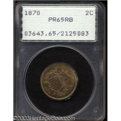 <table><tr><td><TABLE cellSpacing=0 cellPadding=0 width="100%" bgColor=#000000 border=0><TBODY> <TR><TD width="100%"><TABLE cellSpacing=1 cellPadding=3 width="100%" border=0><TBODY><TR><TD width="100%" bgColor=#79735c><FONT face=arial color=#ffffff size=3><B>Description</B> </FONT></TD></TR><TR><TD width="100%" bgColor=#ffffff><FONT face=arial size=2><B>1870 2C PR65 Red and Brown PCGS.</B></I> Reflective, copper-red surfaces, with more subdued design elements. Some minor reverse discoloration appears on the right side. This one is housed in an early PCGS holder. </FONT></TD></TR></TBODY></TABLE></TD></TR></TBODY></TABLE><BR><A name=PricesRealized></A><TABLE cellSpacing=0 cellPadding=0 width="100%" bgColor=#000000 border=0><TBODY><TR><TD width="100%"><TABLE cellSpacing=1 cellPadding=3 width="100%" border=0><TBODY><TR><TD width="100%" bgColor=#79735c><A name=PR><FONT face=arial color=#ffffff size=3><B>Previous Prices from Heritage Auctions</B> </FONT></A></TD></TR><TR><TD bgColor=#f6f6ed><TABLE cellSpacing=0 cellPadding=0 width="100%" border=1><TBODY><TR><TD align=middle width="33%"><B>Date</B></TD><TD align=middle width="33%"><B>Service</B></TD><TD align=middle width="33%"><B>Price</B></TD></TR><TR bgColor=whitesmoke><TD width="33%"><B>07/15/2003</B></TD><TD width="33%">NGC</TD><TD width="33%">$632.50</TD></TR><TR bgColor=whitesmoke><TD width="33%"><B>03/23/2003</B></TD><TD width="33%">PCGS</TD><TD width="33%">$690.00</TD></TR><TR bgColor=whitesmoke><TD width="33%"><B>11/23/2002</B></TD><TD width="33%">PCGS</TD><TD width="33%">$632.50</TD></TR><TR bgColor=whitesmoke><TD width="33%"><B>02/23/2002</B></TD><TD width="33%">NGC</TD><TD width="33%">$747.50</TD></TR><TR bgColor=whitesmoke><TD width="33%"><B>08/05/2001</B></TD><TD width="33%">NGC</TD><TD width="33%">$529.00</TD></TR><TR bgColor=whitesmoke><TD width="33%"><B>08/05/2001</B></TD><TD width="33%">NGC</TD><TD width="33%">$517.50</TD></TR><TR bgColor=whitesmoke><TD width="33%"><B>08/08/2001</B></TD><TD width="33%">NGC</TD><TD width="33%">$862.50</TD></TR><TR bgColor=whitesmoke><TD width="33%"><B>04/05/2001</B></TD><TD width="33%">NGC</TD><TD width="33%">$483.00</TD></TR><TR bgColor=whitesmoke><TD width="33%"><B>01/05/2001</B></TD><TD width="33%">PCGS</TD><TD width="33%">$649.75</TD></TR><TR bgColor=whitesmoke><TD width="33%"><B>06/07/1997</B></TD><TD width="33%">PCGS</TD><TD width="33%">$577.50</TD></TR><TR bgColor=whitesmoke><TD width="33%"><B>01/11/1997</B></TD><TD width="33%">PCGS</TD><TD width="33%">$632.50</TD></TR><TR bgColor=whitesmoke><TD width="33%"><B>08/17/1996</B></TD><TD width="33%">NGC</TD><TD width="33%">$742.50</TD></TR><TR bgColor=whitesmoke><TD width="33%"><B>02/24/1995</B></TD><TD width="33%">PCGS</TD><TD width="33%">$660.00</TD></TR><TR bgColor=whitesmoke><TD width="33%"><B>06/03/1994</B></TD><TD width="33%">PCGS</TD><TD width="33%">$715.00</TD></TR><TR bgColor=whitesmoke><TD width="33%"><B>09/01/1995</B></TD><TD width="33%">PCGS</TD><TD width="33%">$633.00</TD></TR></TBODY></TABLE></TD></TR><TR><TD bgColor=#ffffff><FONT face=arial size=1 ?>PLEASE NOTE: All prices realized reflect the final hammer price PLUS the buyer's premium in auctions that charge a buyer's premium. Each item has a notation at the top of the listing indicating whether that lot included a buyer's premium. Example: A item that sells with a final hammer price of $100 and a 20% buyer's premium will display with a price realized of $120. All information listed is intended to be as accurate as possible, but errors are possible. Please use this guide carefully and inform us of any inaccuracies. </FONT></TD></TR></TBODY></TABLE></TD></TR></TBODY></TABLE><BR><TABLE cellSpacing=0 cellPadding=0 width="100%" bgColor=#000000 border=0><TBODY><TR><TD width="100%"><TABLE cellSpacing=1 cellPadding=3 width="100%" border=0><TBODY><TR><TD width="100%" bgColor=#79735c colSpan=6><FONT face=arial color=#ffffff size=3><B>Price Guide*</B> </FONT></TD></TR><TR bgColor=#f6f6ed><TD align=middle><B>Grade</B> </TD><TD align=middle><B>Coin World<BR>(Trends)</B> </TD><TD align=middle><B>Numismedia<BR>Retail</B> </TD><TD align=middle><B>Numismedia<BR>Wholesale</B> </TD><TD align=middle><B>Coin<BR>Universe</B> </TD><TD align=middle><B>Heritage<BR>Value Index</B> </TD></TR><TR bgColor=#ffffff><TD align=middle>64</TD><TD align=right>---</TD><TD align=right>$570.00</TD><TD align=right>$456.00</TD><TD align=right>$550.00</TD><TD align=right>$377.00</TD></TR><TR style="FONT-WEIGHT: bold" bgColor=#cccfdd><TD align=middle>65</TD><TD align=right>---</TD><TD align=right>$970.00</TD><TD align=right>$775.00</TD><TD align=right>$790.00</TD><TD align=right>$555.17</TD></TR><TR bgColor=#ffffff><TD align=middle>66</TD><TD align=right>---</TD><TD align=right>---</TD><TD align=right>$1,075.00</TD><TD align=right>$1,225.00</TD><TD align=right>$903.75</TD></TR><TR bgColor=#ffffff><TD colSpan=6><FONT size=1>*All information listed is intended to be as accurate as possible, but errors are possible. No item may be returned or refused based on this information which is provided as a service to our customers. You should contact each pricing source directly to determine the accuracy of this information. </FONT></TD></TR></TBODY></TABLE></TD></TR></TBODY></TABLE><BR><TABLE cellSpacing=0 cellPadding=0 width="100%" bgColor=#000000 border=0><TBODY><TR><TD width="100%"><TABLE cellSpacing=1 cellPadding=3 width="100%" border=0><TBODY><TR><TD width="100%" bgColor=#79735c><FONT face=arial color=#ffffff size=3><B>Population Guide</B> </FONT></TD></TR><TR bgColor=#ffffff><TD align=middle><!-- Begin Output of Population Grid--><TABLE cellSpacing=0 cellPadding=0 width="100%" border=0><TBODY><TR><TD vAlign=center><TABLE cellSpacing=0 width="100%" border=1 cellsadding="3"><TBODY><TR><TD vAlign=center><TABLE cellSpacing=0 cellPadding=3 width="100%" border=1><TBODY><TR><TD vAlign=center align=middle bgColor=#f0f1e8 colSpan=2 <CENTER><FONT face=Arial size=2><B>PCGS Pop </B></FONT><CENTER></CENTER></TD><TD vAlign=center al