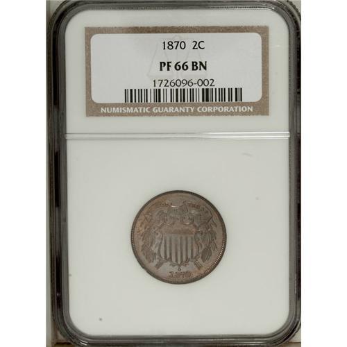1870 2C PR66 Brown NGC. The smooth, pristine, glossy s