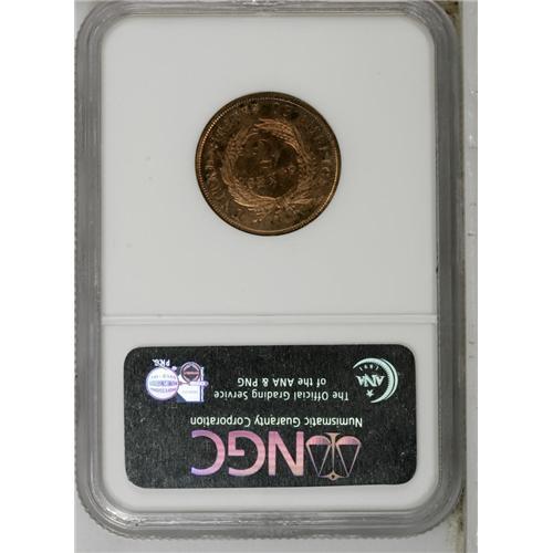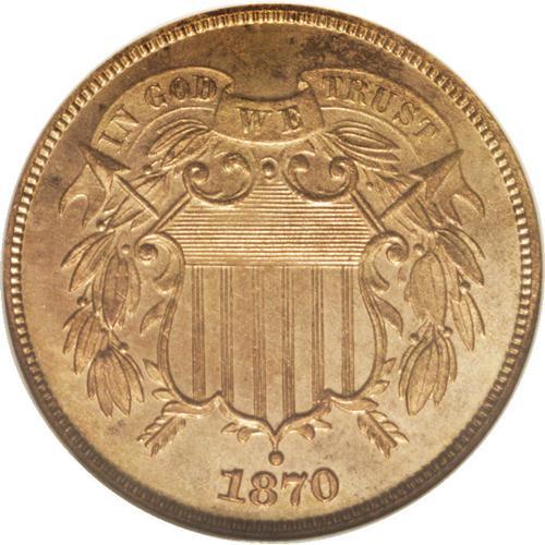 <B>1870 2C PR66 Red NGC.</B></I> A flashy brick-red beauty with precisely struck devices and insignificant carbon. The <I>Guide Book</B></I> reports that more than 1,000 proofs were struck, but only a fraction of that production retains full red status. Census: 11 in 66 Red, 2 finer (10/06).<BR><BR><b>Shipping:</b> Coin/Currency (<a target="_blank" href="http://www.heritageauctions.com/common/shipping.php">view shipping information</a>)