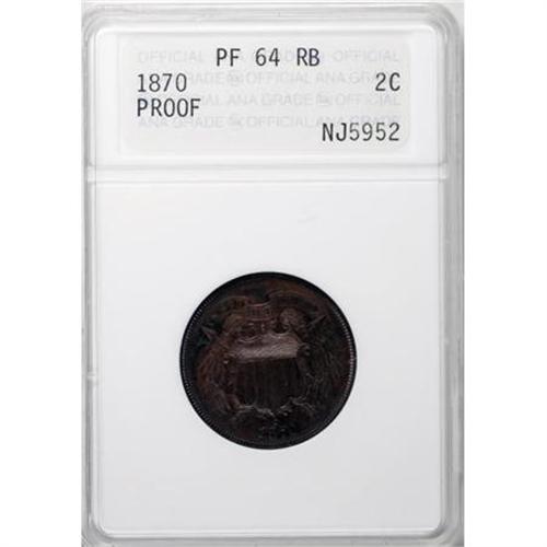 <B>1870 2C PR64 Red and Brown ANACS.</B></I> . NGC Census: (42/64). PCGS Population (90/50). Mintage: 1,000. Numismedia Wsl. Price for NGC/PCGS coin in PR64: $525. (#3643)<BR><BR><B>Coin Engraver:</B> James B. Longacre<BR><BR><b>Shipping:</b> Coins & Currency (<a target="_blank" href="http://www.heritageauctions.com/common/shipping.php">view shipping information</a>)