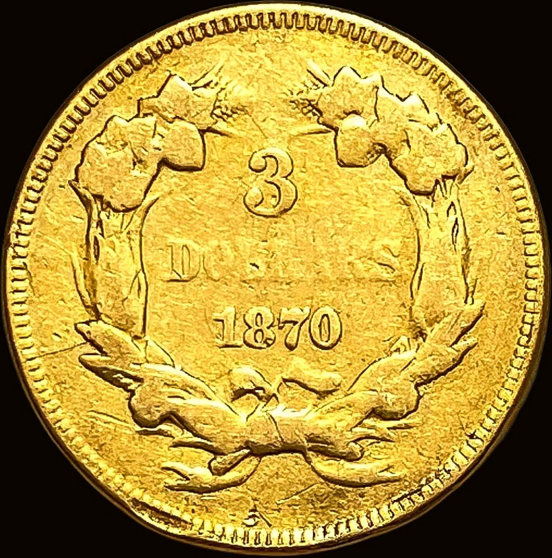1870 $3 Gold Indian Princess Head NICELY CIRCULATED