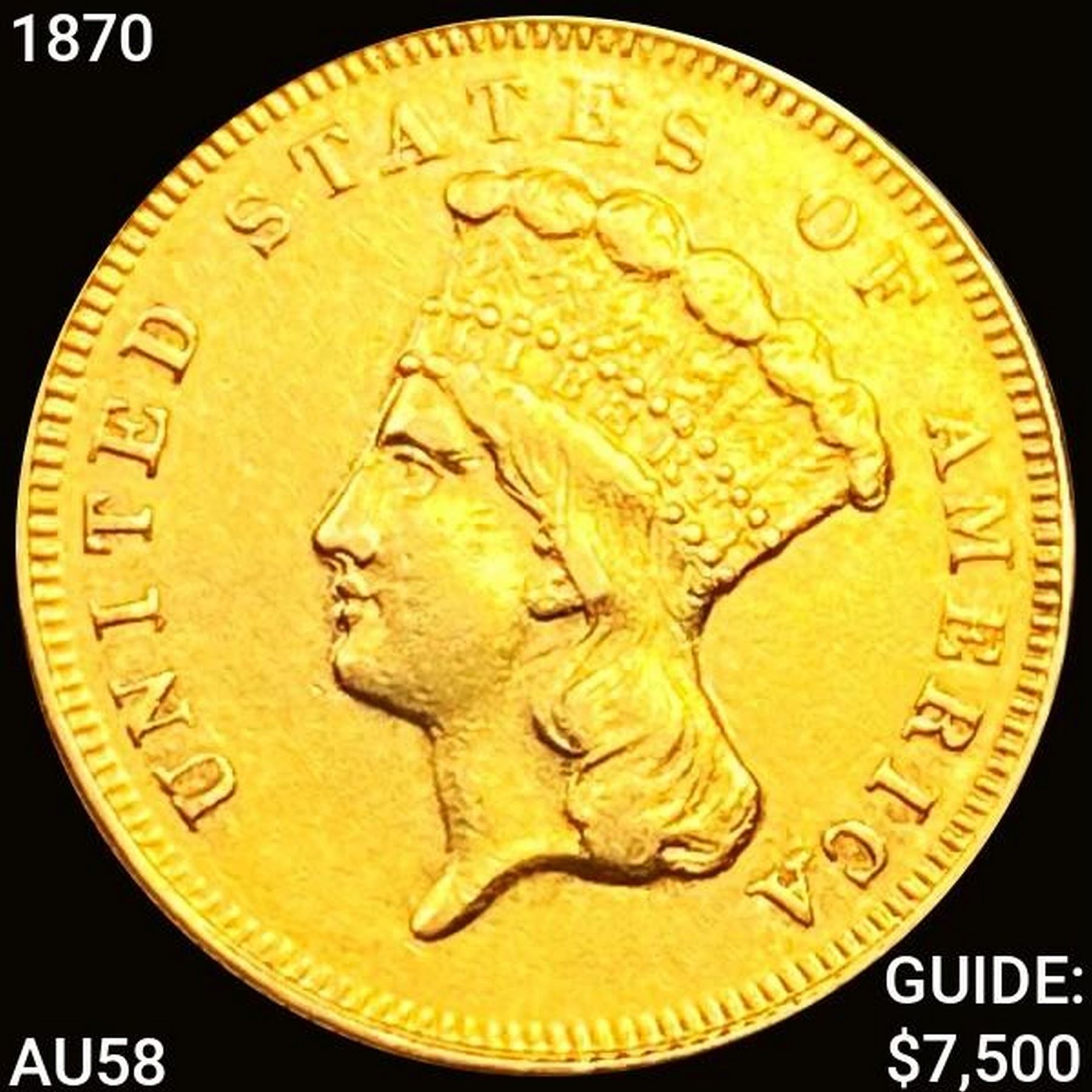 1870 $3 Gold Piece CHOICE AU