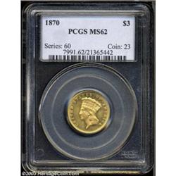 <table><tr><td><TABLE cellSpacing=0 cellPadding=0 width="100%" bgColor=#000000 border=0><TBODY> <TR><TD width="100%"><TABLE cellSpacing=1 cellPadding=3 width="100%" border=0><TBODY><TR><TD width="100%" bgColor=#79735c><FONT face=arial color=#ffffff size=3><B>Description</B> </FONT></TD></TR><TR><TD width="100%" bgColor=#ffffff><FONT face=arial size=2><B>1870 $3 MS62 PCGS.</B></I> This is certainly one of the finer specimens known of this scarce issue. The fields are bright and retain a semi-prooflike appearance, this effect created by the many die striations seen on each side. Just a bit softly struck on the highpoints of the devices, there are numerous small abrasions that account for the grade. One contact mark is noted in the right reverse field to the right of the 3.<BR><I>From The New Millennium Collection.</B></I> </FONT></TD></TR></TBODY></TABLE></TD></TR></TBODY></TABLE><BR><A name=PricesRealized></A><TABLE cellSpacing=0 cellPadding=0 width="100%" bgColor=#000000 border=0><TBODY><TR><TD width="100%"><TABLE cellSpacing=1 cellPadding=3 width="100%" border=0><TBODY><TR><TD width="100%" bgColor=#79735c><A name=PR><FONT face=arial color=#ffffff size=3><B>Previous Prices from Heritage Auctions</B> </FONT></A></TD></TR><TR><TD bgColor=#f6f6ed><TABLE cellSpacing=0 cellPadding=0 width="100%" border=1><TBODY><TR><TD align=middle width="33%"><B>Date</B></TD><TD align=middle width="33%"><B>Service</B></TD><TD align=middle width="33%"><B>Price</B></TD></TR><TR bgColor=whitesmoke><TD width="33%"><B>08/01/1995</B></TD><TD width="33%">NGC</TD><TD width="33%">$3,520.00</TD></TR></TBODY></TABLE></TD></TR><TR><TD bgColor=#ffffff><FONT face=arial size=1 ?>PLEASE NOTE: All prices realized reflect the final hammer price PLUS the buyer's premium in auctions that charge a buyer's premium. Each item has a notation at the top of the listing indicating whether that lot included a buyer's premium. Example: A item that sells with a final hammer price of $100 and a 20% buyer's premium will display with a price realized of $120. All information listed is intended to be as accurate as possible, but errors are possible. Please use this guide carefully and inform us of any inaccuracies. </FONT></TD></TR></TBODY></TABLE></TD></TR></TBODY></TABLE><BR><TABLE cellSpacing=0 cellPadding=0 width="100%" bgColor=#000000 border=0><TBODY><TR><TD width="100%"><TABLE cellSpacing=1 cellPadding=3 width="100%" border=0><TBODY><TR><TD width="100%" bgColor=#79735c colSpan=6><FONT face=arial color=#ffffff size=3><B>Price Guide*</B> </FONT></TD></TR><TR bgColor=#f6f6ed><TD align=middle><B>Grade</B> </TD><TD align=middle><B>Coin World<BR>(Trends)</B> </TD><TD align=middle><B>Numismedia<BR>Retail</B> </TD><TD align=middle><B>Numismedia<BR>Wholesale</B> </TD><TD align=middle><B>Coin<BR>Universe</B> </TD><TD align=middle><B>Heritage<BR>Value Index</B> </TD></TR><TR bgColor=#ffffff><TD align=middle>61</TD><TD align=right>---</TD><TD align=right>---</TD><TD align=right>$3,750.00</TD><TD align=right>$4,875.00</TD><TD align=right>$3,712.50</TD></TR><TR style="FONT-WEIGHT: bold" bgColor=#cccfdd><TD align=middle>62</TD><TD align=right>$6,000.00</TD><TD align=right>---</TD><TD align=right>$4,725.00</TD><TD align=right>$6,050.00</TD><TD align=right>$4,611.67</TD></TR><TR bgColor=#ffffff><TD align=middle>63</TD><TD align=right>$12,000.00</TD><TD align=right>---</TD><TD align=right>$6,450.00</TD><TD align=right>$12,400.00</TD><TD align=right>$7,943.33</TD></TR><TR bgColor=#ffffff><TD colSpan=6><FONT size=1>*All information listed is intended to be as accurate as possible, but errors are possible. No item may be returned or refused based on this information which is provided as a service to our customers. You should contact each pricing source directly to determine the accuracy of this information. </FONT></TD></TR></TBODY></TABLE></TD></TR></TBODY></TABLE><BR><TABLE cellSpacing=0 cellPadding=0 width="100%" bgColor=#000000 border=0><TBODY><TR><TD width="100%"><TABLE cellSpacing=1 cellPadding=3 width="100%" border=0><TBODY><TR><TD width="100%" bgColor=#79735c><FONT face=arial color=#ffffff size=3><B>Population Guide</B> </FONT></TD></TR><TR bgColor=#ffffff><TD align=middle><!-- Begin Output of Population Grid--><TABLE cellSpacing=0 cellPadding=0 width="100%" border=0><TBODY><TR><TD vAlign=center><TABLE cellSpacing=0 width="100%" border=1 cellsadding="3"><TBODY><TR><TD vAlign=center><TABLE cellSpacing=0 cellPadding=3 width="100%" border=1><TBODY><TR><TD vAlign=center align=middle bgColor=#f0f1e8 colSpan=2 <CENTER><FONT face=Arial size=2><B>PCGS Pop </B></FONT><CENTER></CENTER></TD><TD vAlign=center align=middle bgColor=#f0f1e8 colSpan=2><CENTER><FONT face=Arial size=2><B>NGC Pop</B></CENTER></FONT></TD></TR><TR><TD vAlign=center><FONT face=Arial size=2>(62)</FONT> </TD><TD vAlign=center align=right><FONT face=Arial size=2>9</FONT> </TD><TD vAlign=center><FONT face=Arial size=2>(62)</FONT> </TD><TD vAlign=center align=right><FONT face=Arial size=2>6</FONT> </TD></TR><TR><TD vAlign=center><FONT face=Arial size=2>(>62)</FONT> </TD><TD vAlign=center align=right><FONT face=Arial size=2>7</FONT> </TD><TD vAlign=center><FONT face=Arial size=2>(>62)</FONT> </TD><TD vAlign=center align=right><FONT face=Arial size=2>3</FONT> </TD></TR></TBODY></TABLE></TD></TR></TBODY></TABLE></TD></TR></TBODY></TABLE><!-- End Output of Population Grid--></TD></TR></TBODY></TABLE></TD></TR></TBODY></TABLE><BR><TABLE cellSpacing=0 cellPadding=0 width="100%" bgColor=#000000 border=0><TBODY><TR> Important notice: Heritage usually auctions material at the rate of 200-250 lots per hour. On some occasions eBay Live bid software or the Internet may not be able to keep up with the pace of the auction. We recommend placing a realistic absentee bid now as insurance to avoid disappointment. Occasionally the auctioneer may eliminate or reject an eBay Live bid, and the auctioneer may also reopen a lot after the close of the eBay live bidding (usually because we missed an audience bid), an