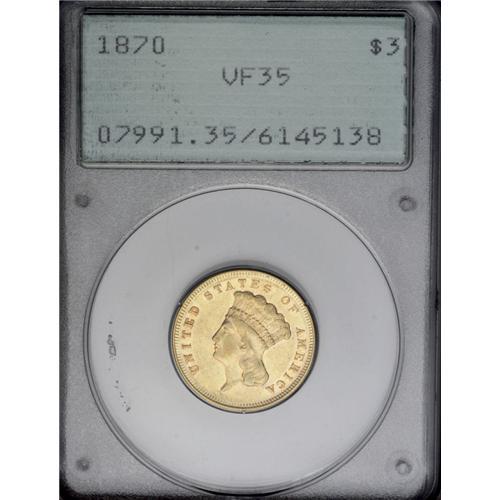 1870 $3 VF35 PCGS. An attractive, well circulated low