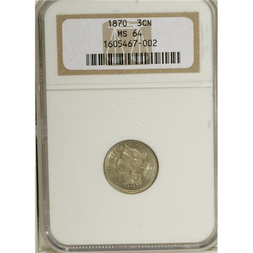 1870 3CN MS64 NGC. NGC Census: (102/48). PCGS Popu