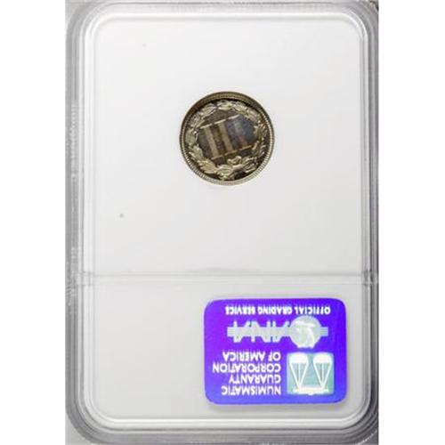 <B>1870 3CN PR63 NGC.</B></I> NGC Census: (29/190). PCGS Population (59/184). Mintage: 1,000. Numismedia Wsl. Price for NGC/PCGS coin in PR63: $275. (#3766)<BR><BR><B>Coin Engraver:</B> James B. Longacre<BR><BR><b>Shipping:</b> Coins & Currency (<a target="_blank" href="http://www.heritageauctions.com/common/shipping.php">view shipping information</a>\)